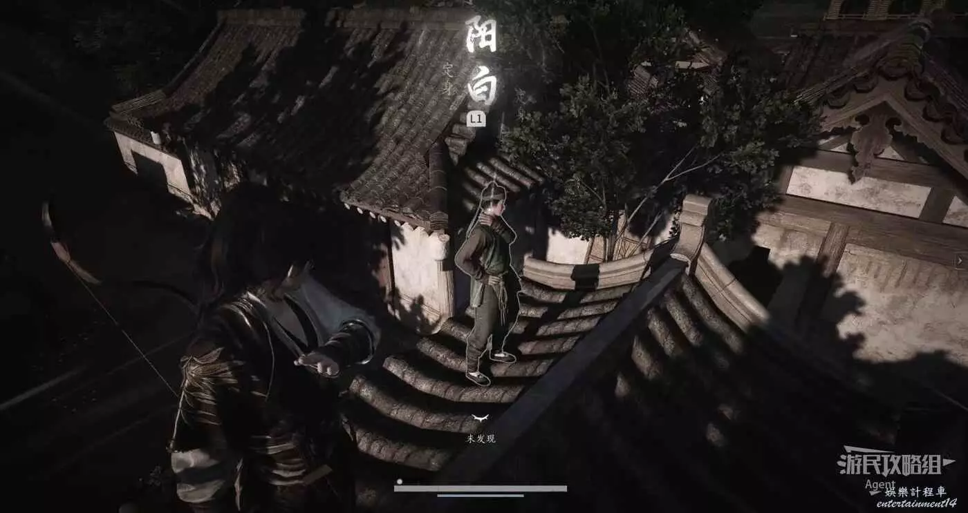查看石碑得知要讓鈴聲響起,用弓箭射樹上的四個鈴鐺。
