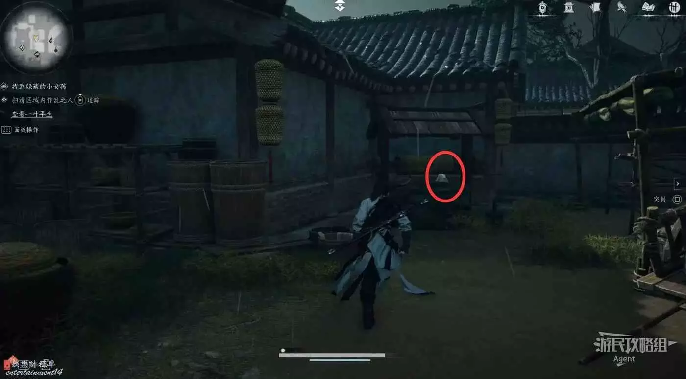 劉芬母親讓你幫忙找孩子,跟隨腳印走,擊敗地痞後,在井後面找到劉芬,帶她回家。