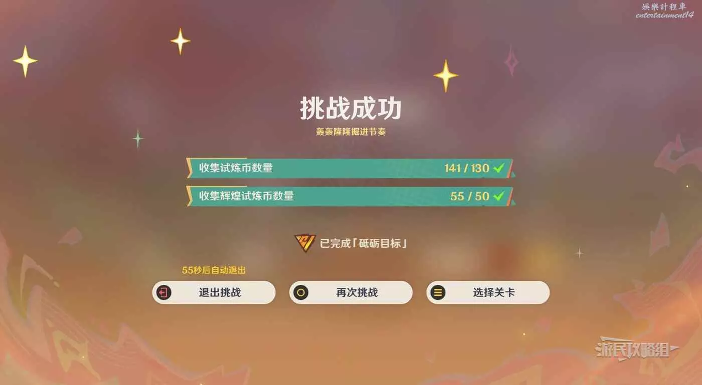 在限定時間內抵達終點;抵達終點時收集130枚「試煉幣」