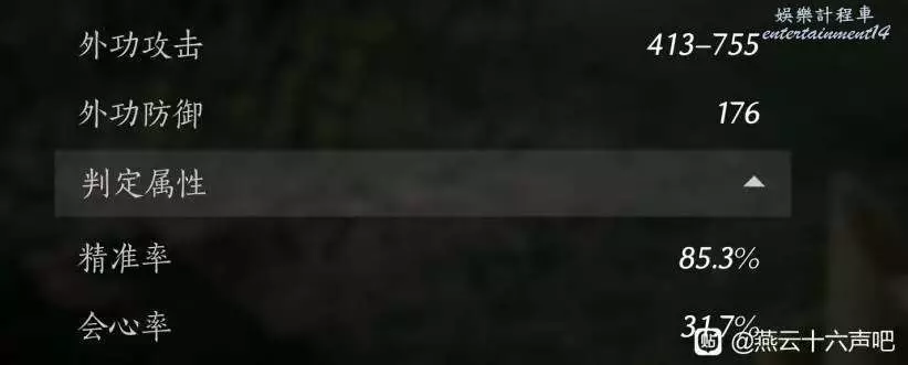 開服第二天正式玩雙刀,現在打10人本傷害在第一頁30w左右,5人本20多w。打多人本心法四時要換成極樂泣血。目前大小攻413/755,會心率31.7。
