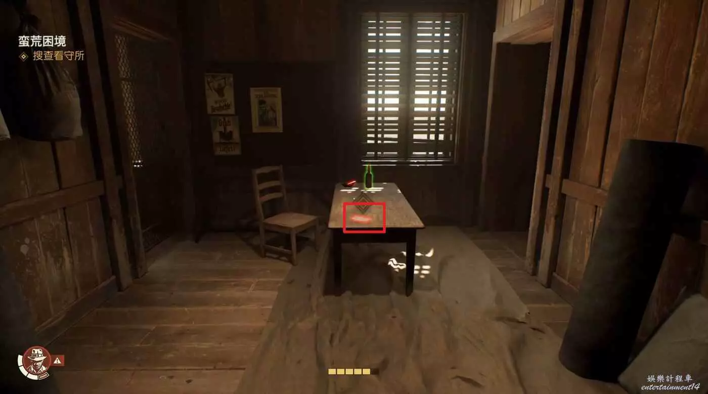 桌子上可以拿到一個筆記【甘茨的日誌】,只有接取實地考察蠻荒困境後才會刷出來。
