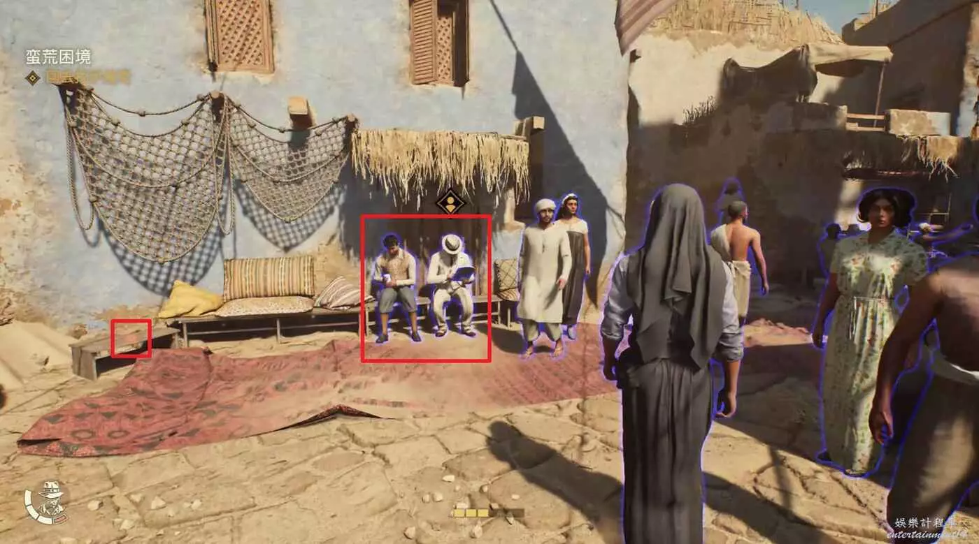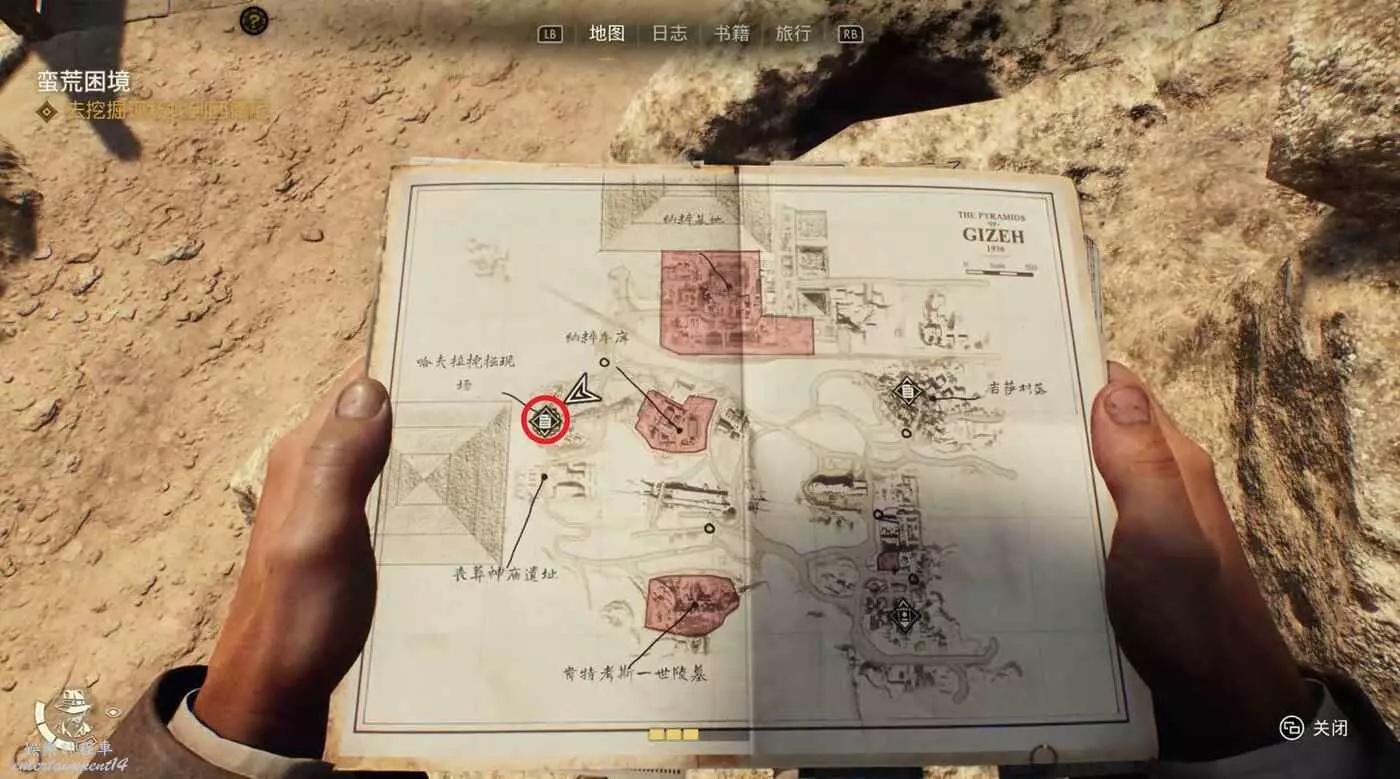 回到吉薩村落,與白衣NPC對話拿到一塊石碑,他們位置左側還有一個筆記可以拿。
