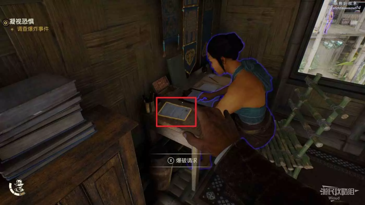 劇情結束後桌子上可以拿到筆記【爆炸請求】。