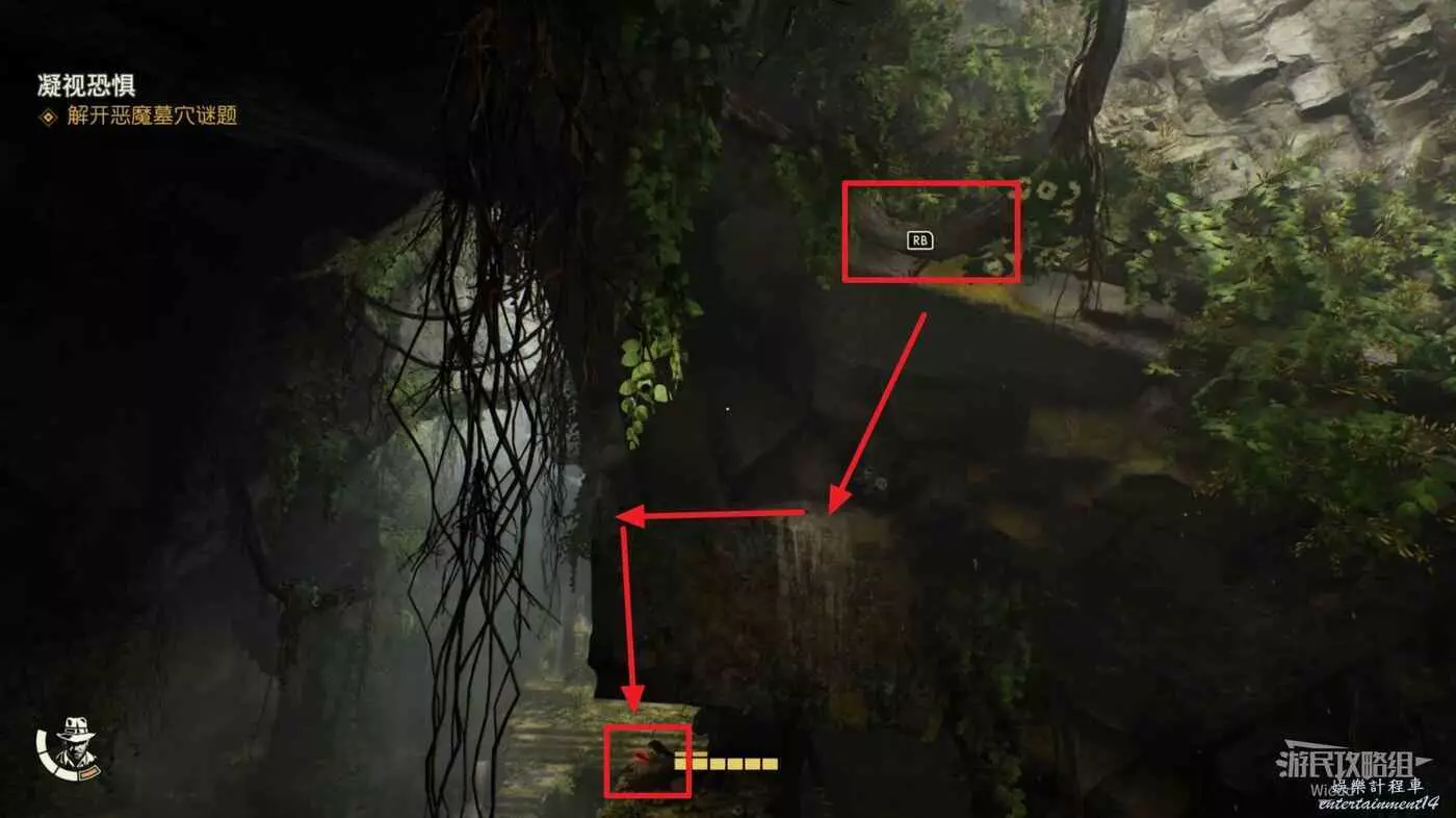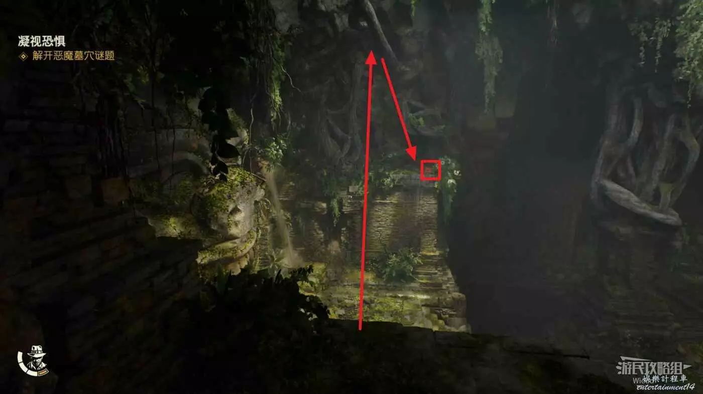 盡頭處需要抓住攀附在牆上的樹藤,因為沒有提示因此許多玩家會錯過這裡。