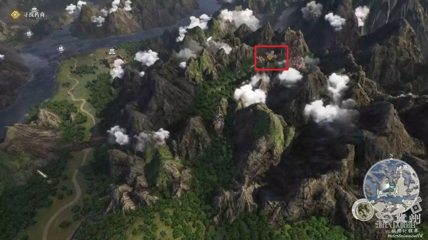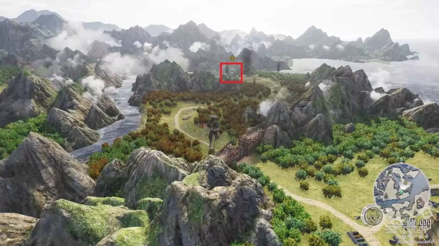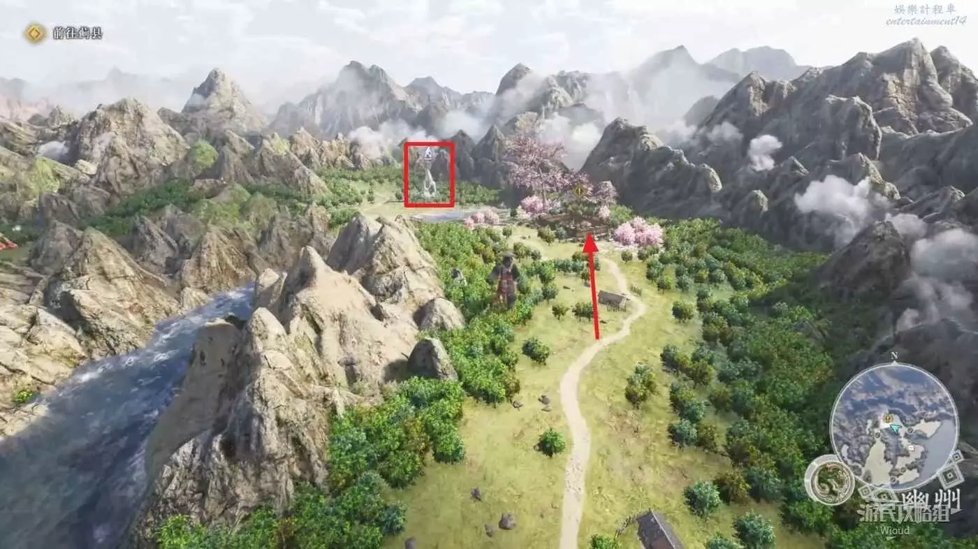 跟隨箭頭從區域下面的位置繞上去,中間是一個特別大的高台,沒法直接過去。