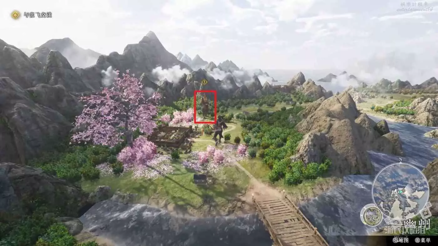 這裡直接沿著下圖路線往右側高台走,張梁就在紅框處。