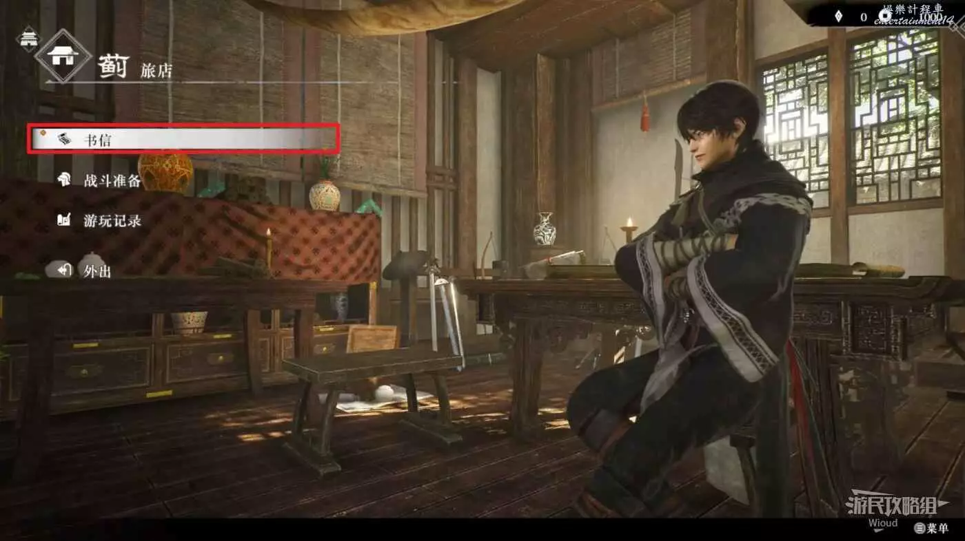 在旅店內選擇第一個選項【書信】,後續的許多劇情都是在這裡觸發。