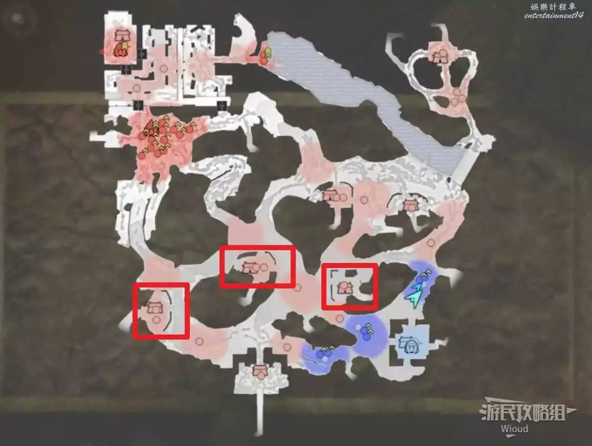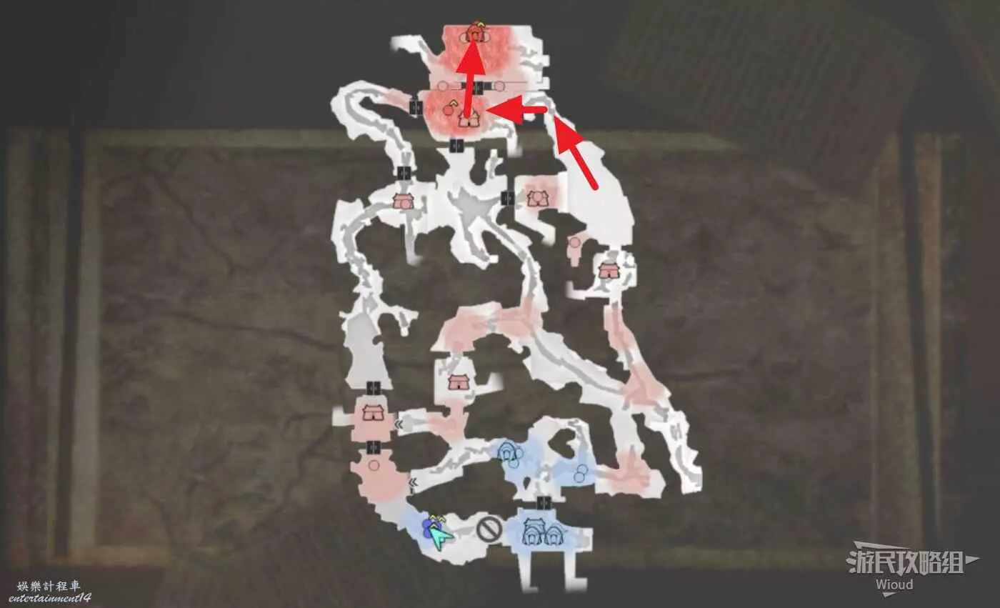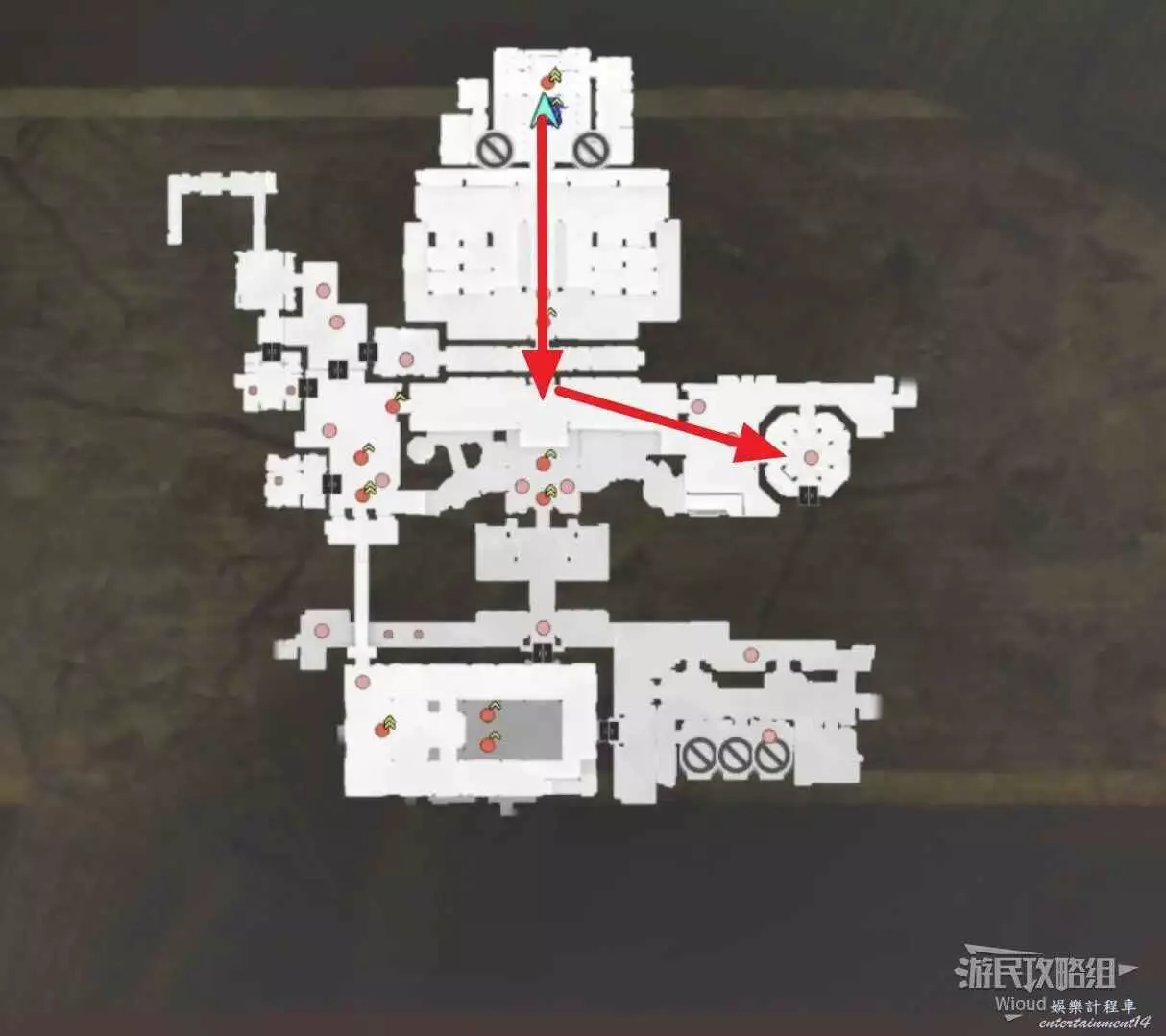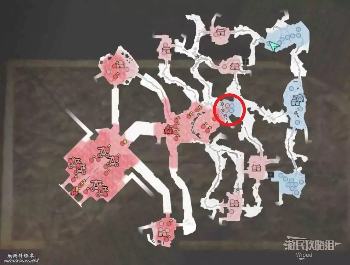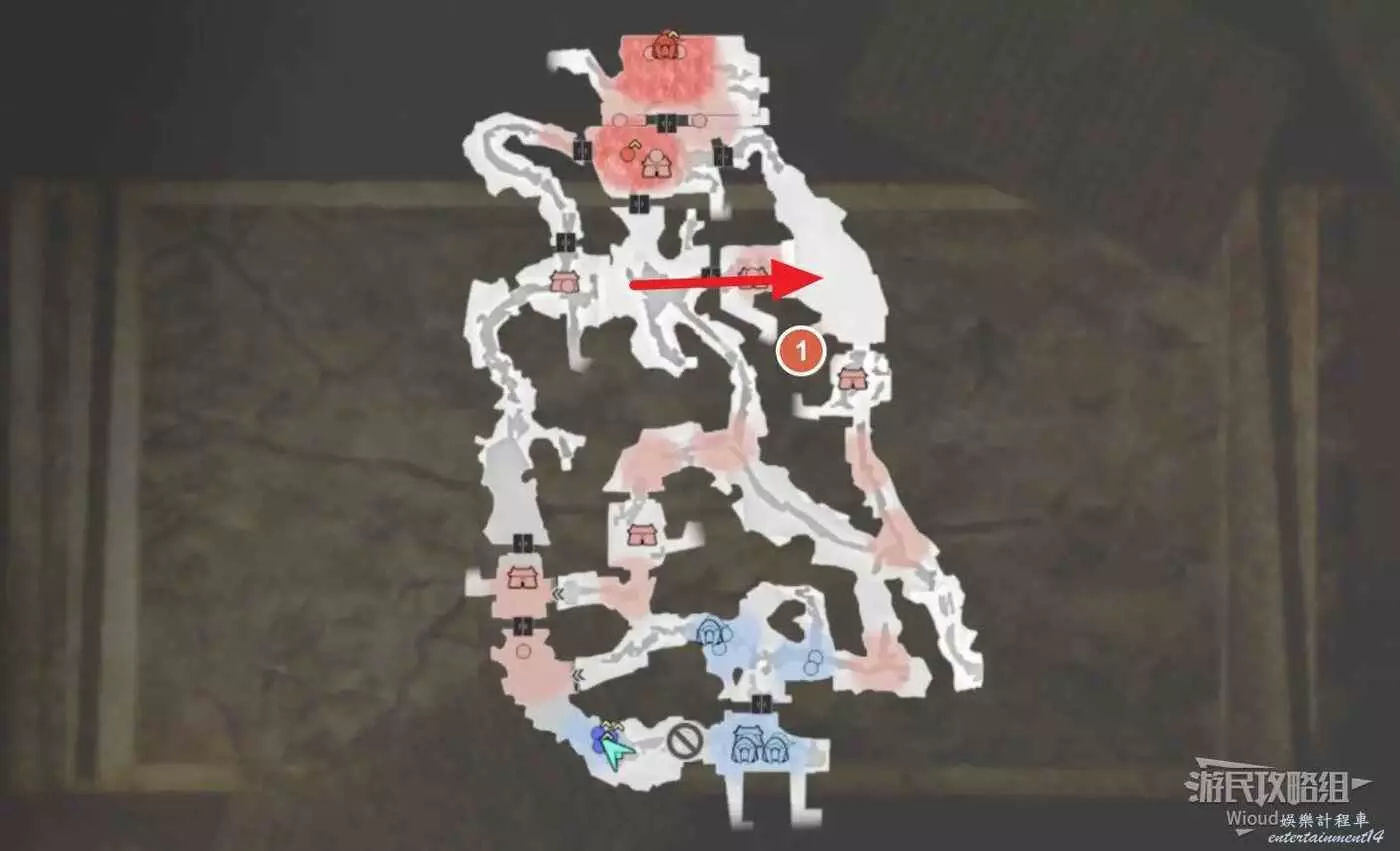 這場戰鬥的起點位於地圖左下角,這裡先往左邊的道路走,中間有一個岔路可以選擇兩條路線,下圖都為大家標註好了,擊敗沿途的所有敵人來到右上角區域。