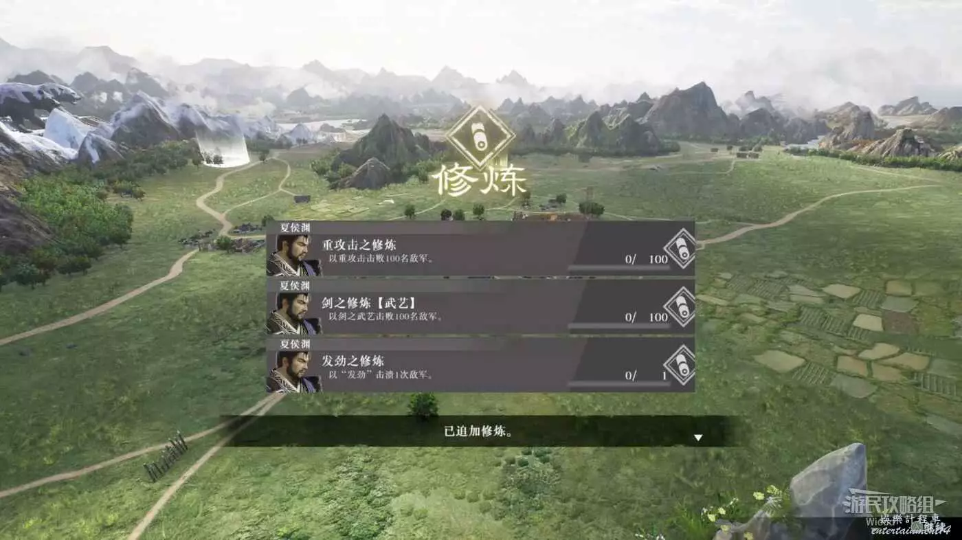 戰鬥結束後解鎖任務【平定豫州之任】,這個任務不著急做,與夏侯淵對話可以解鎖修煉功能,武將會給出三個修煉的條件,完成條件後可以獲得一些戰功。