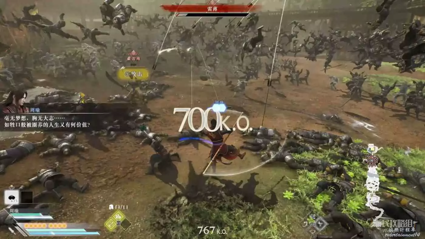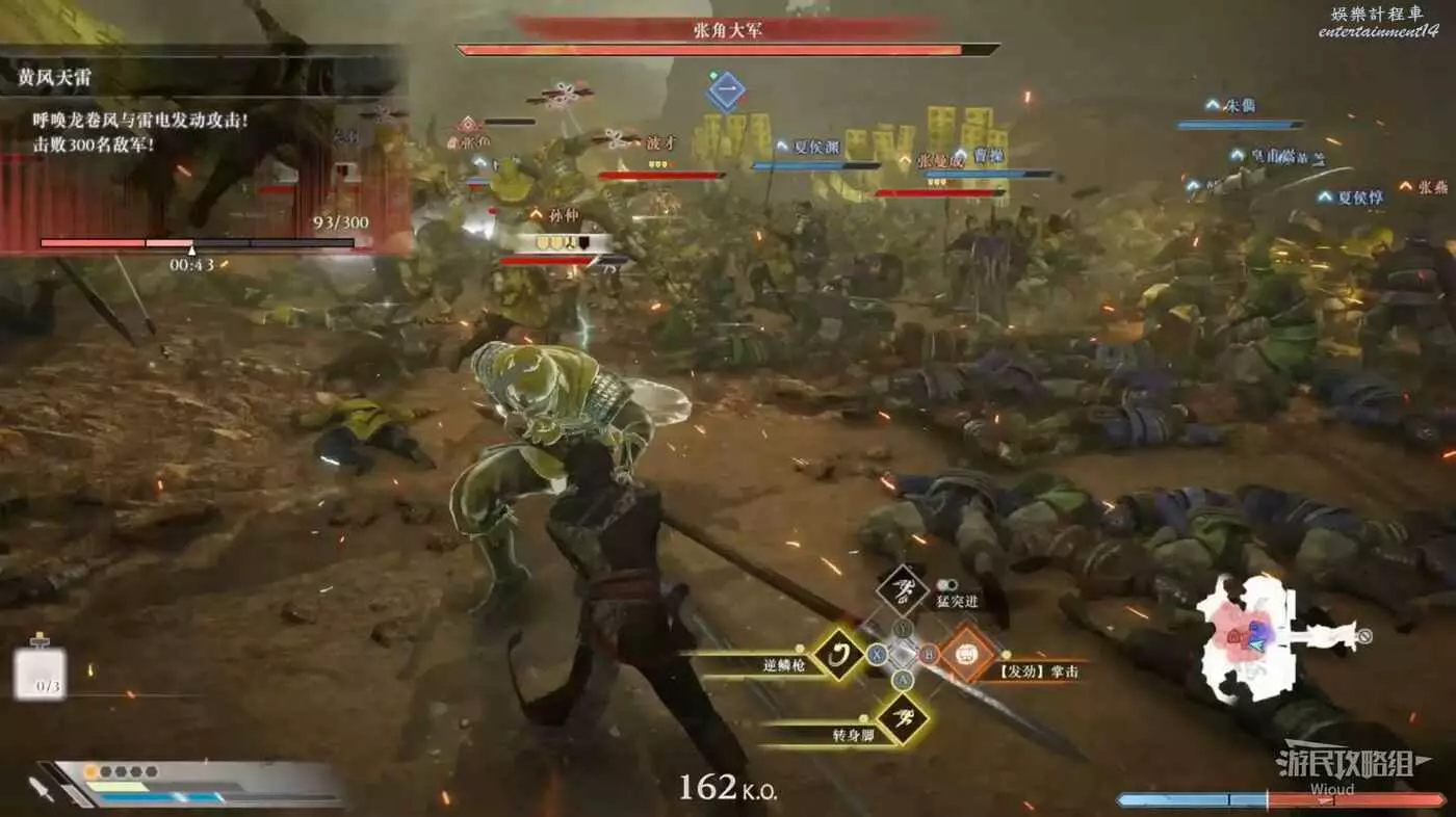 此時會不停觸發【黃風天雷】效果,需要擊敗三百名敵軍才能破除,天雷的傷害很高,看到左上角出現效果時立刻開始狩獵小兵。