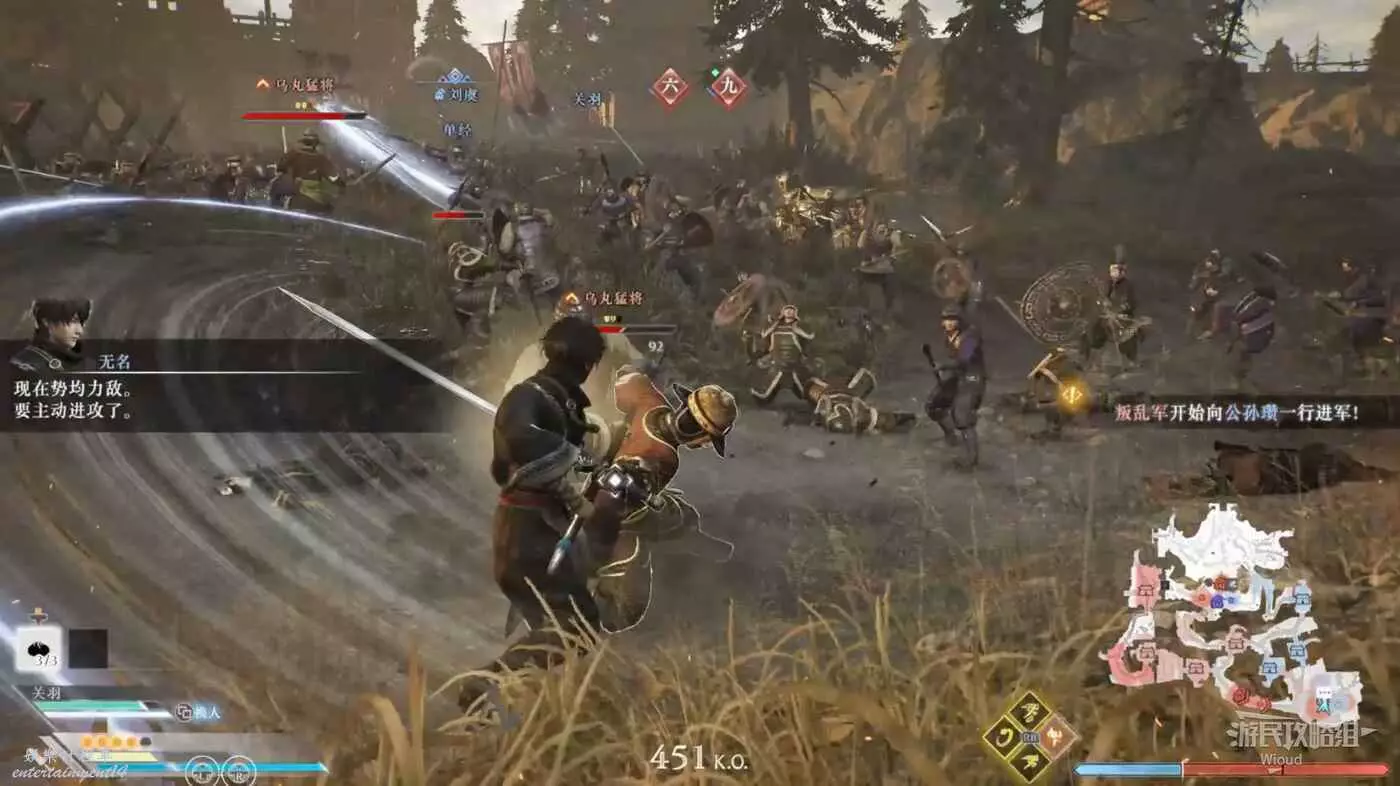 後續的勝利條件會發生改變,等待敵人大軍堵住我們,衝過去將敵人首領幹掉完成戰鬥。