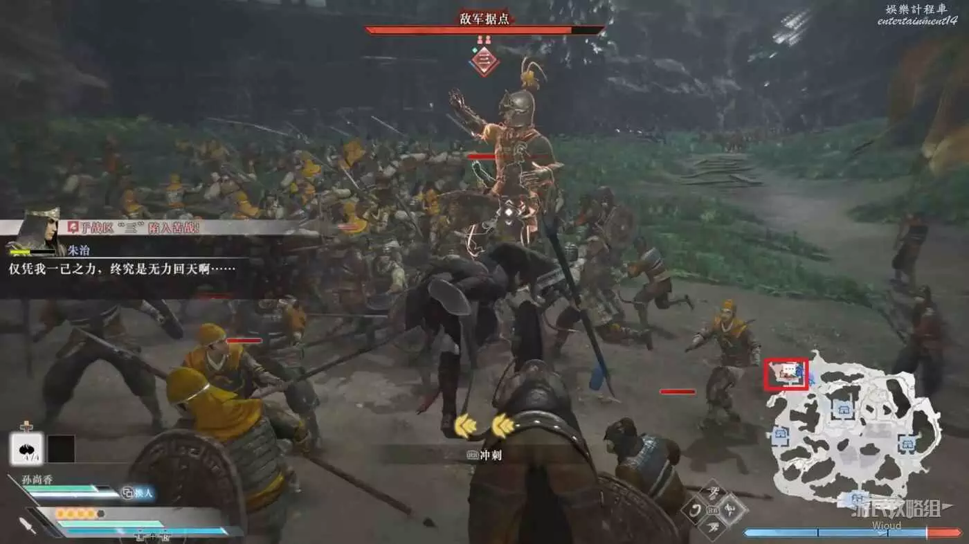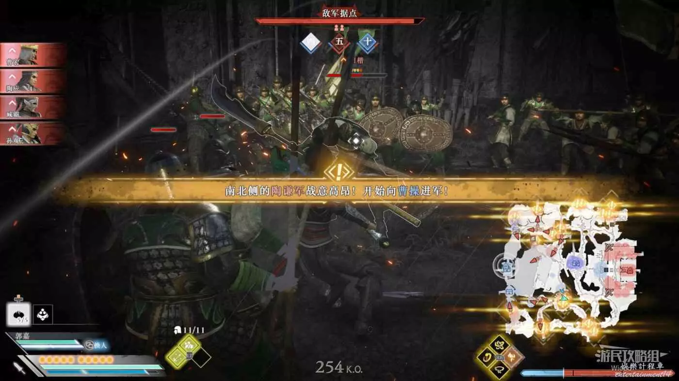 不久後敵人會觸發戰意高昂,然後全軍朝曹操大本營的位置前進,如果前面打了不少據點,這裡得一個一個據點去支援。