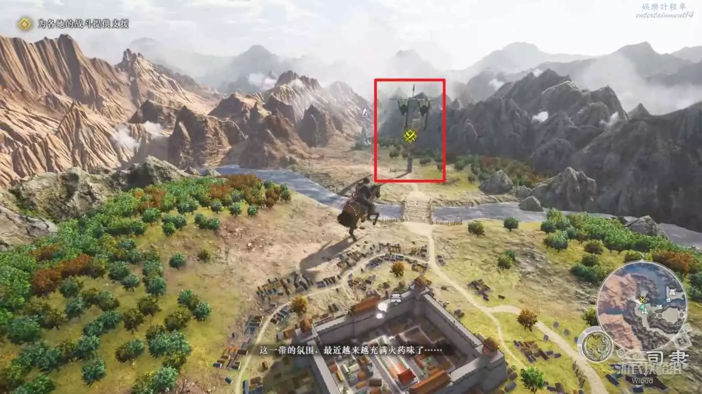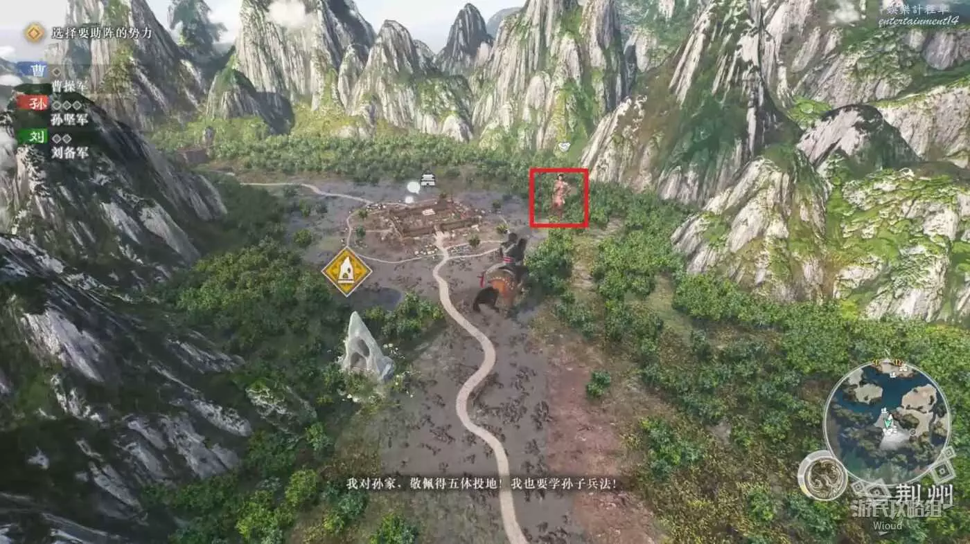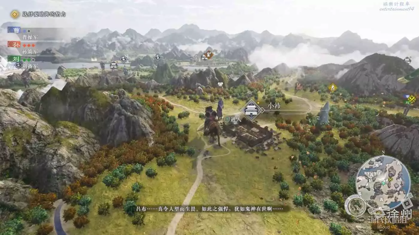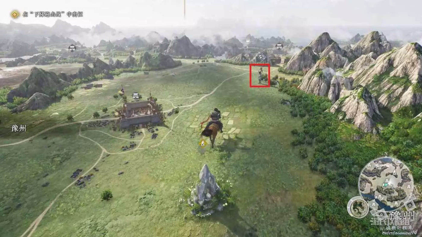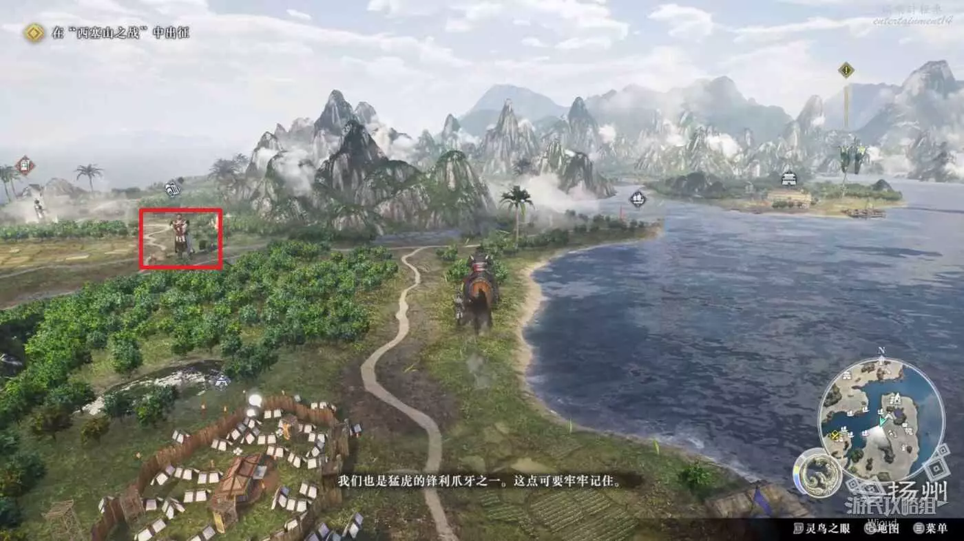 我們按照弱弱強的順序先去打左上角的大軍,無需直接幹掉大軍,擊敗大軍內的軍團長即可,當一個大軍被擊敗,剩餘兵力會往其他大軍的位置跑,這裡一定要騎馬攔截。