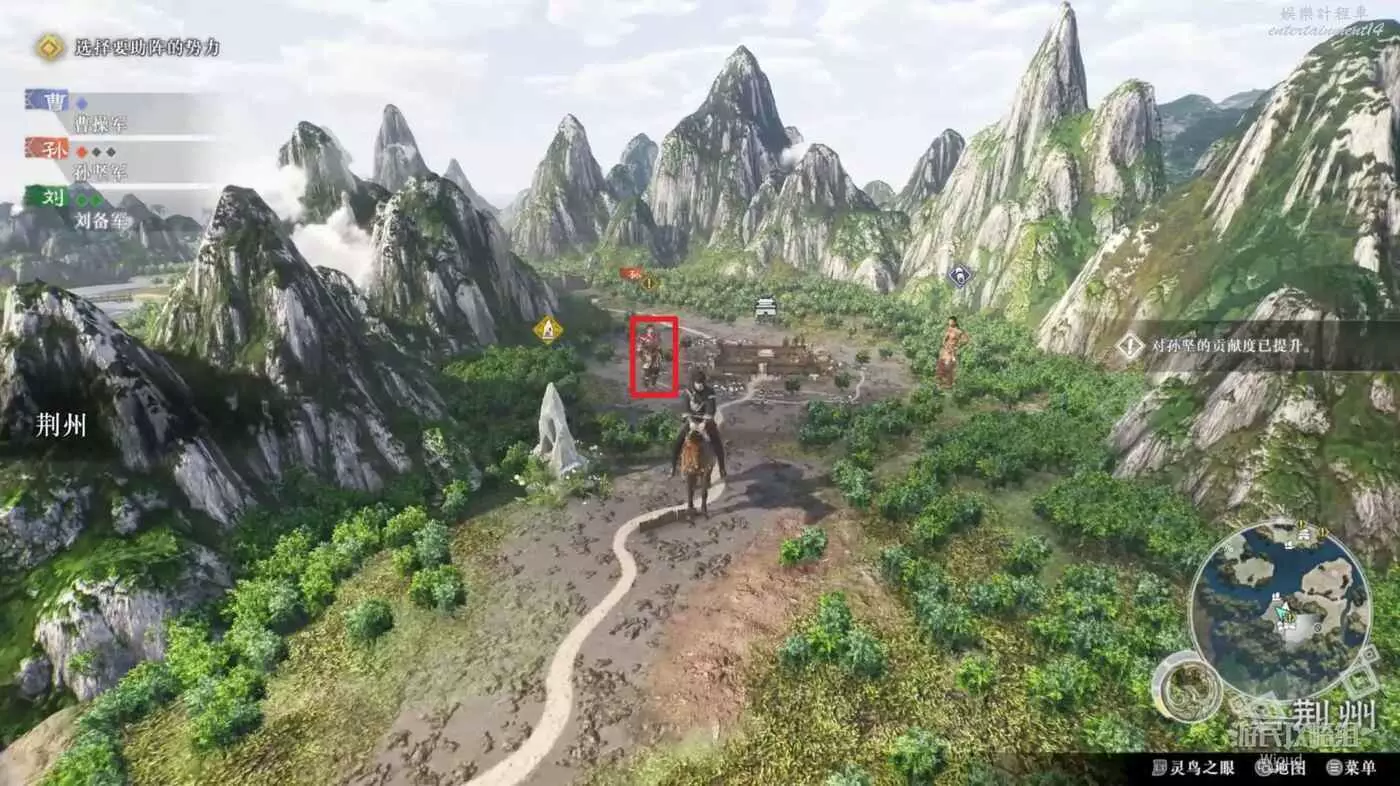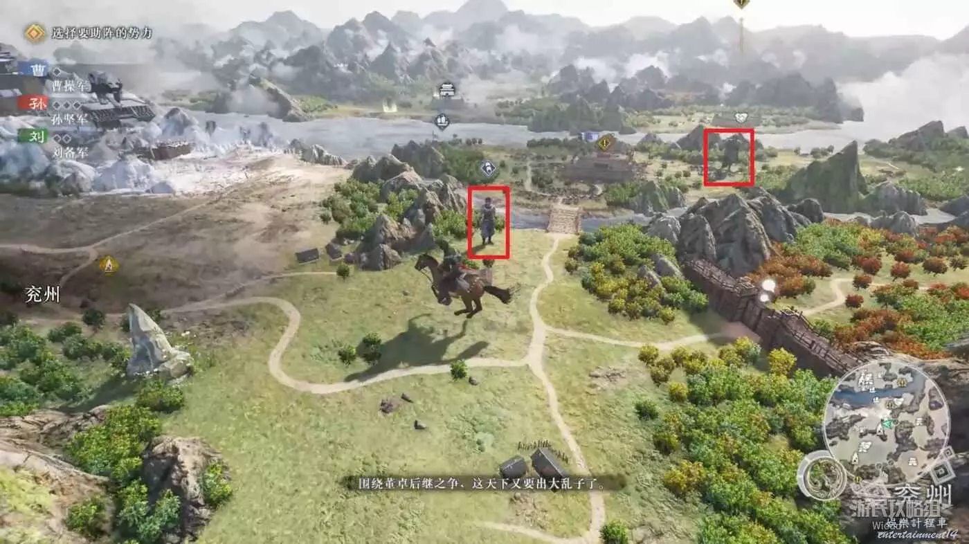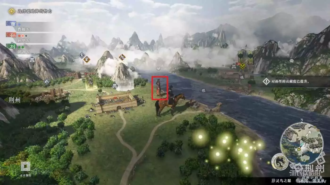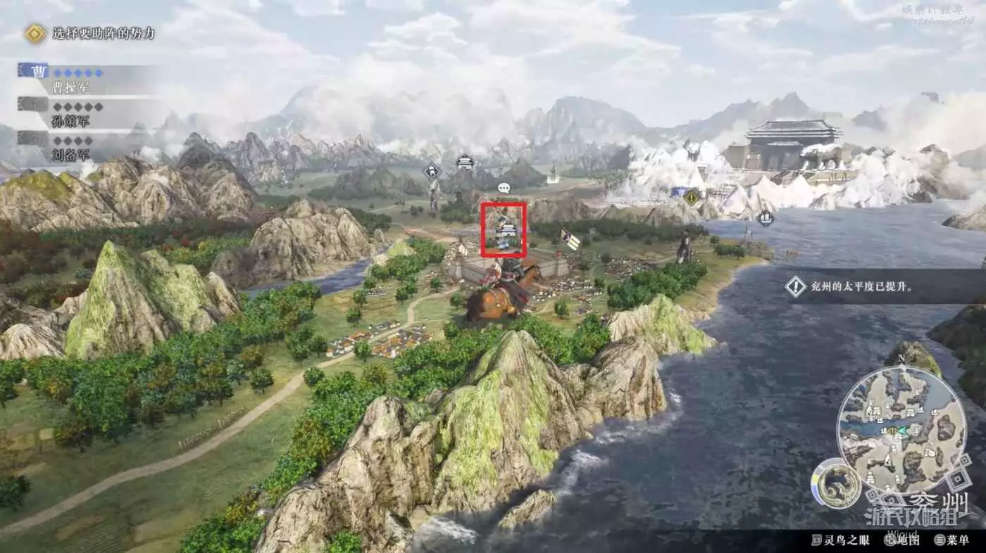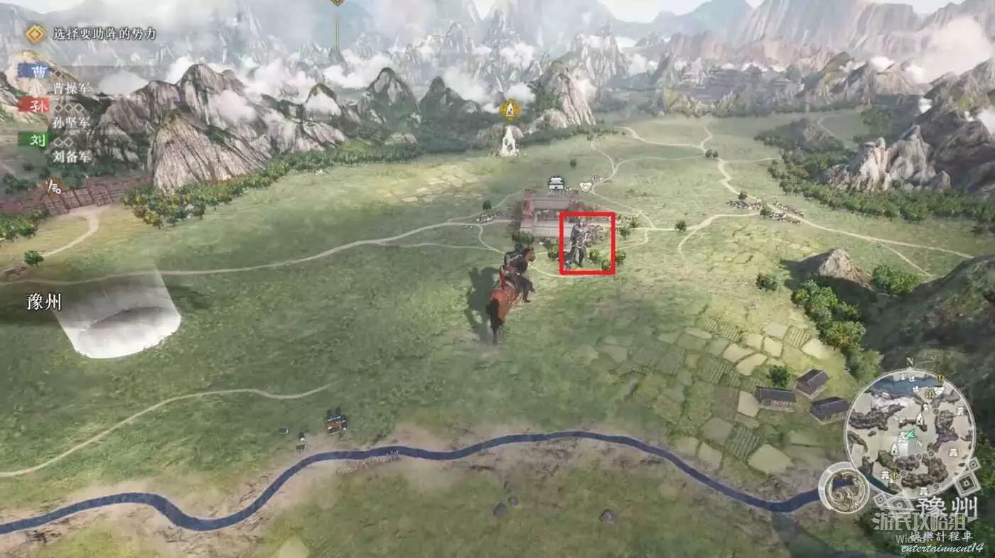 這裡隨時打開功能表查看地圖右下角戰場劉虞的血量,如果血量較低立刻脫離中部戰場往右下角走,支援劉虞。