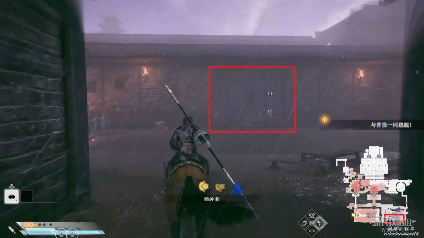 進入最後一個逃脫點遇到關羽堵路,保護曹操並將關羽擊敗完成曹操線的所有劇情。