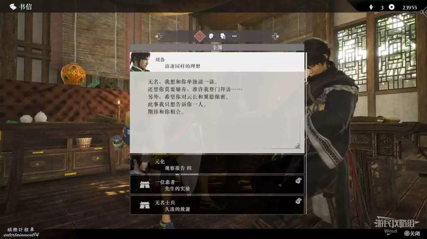 找許褚對話,進入旅店閱讀劉備的書信並與郭嘉對話開啟【小沛逃亡戰】。