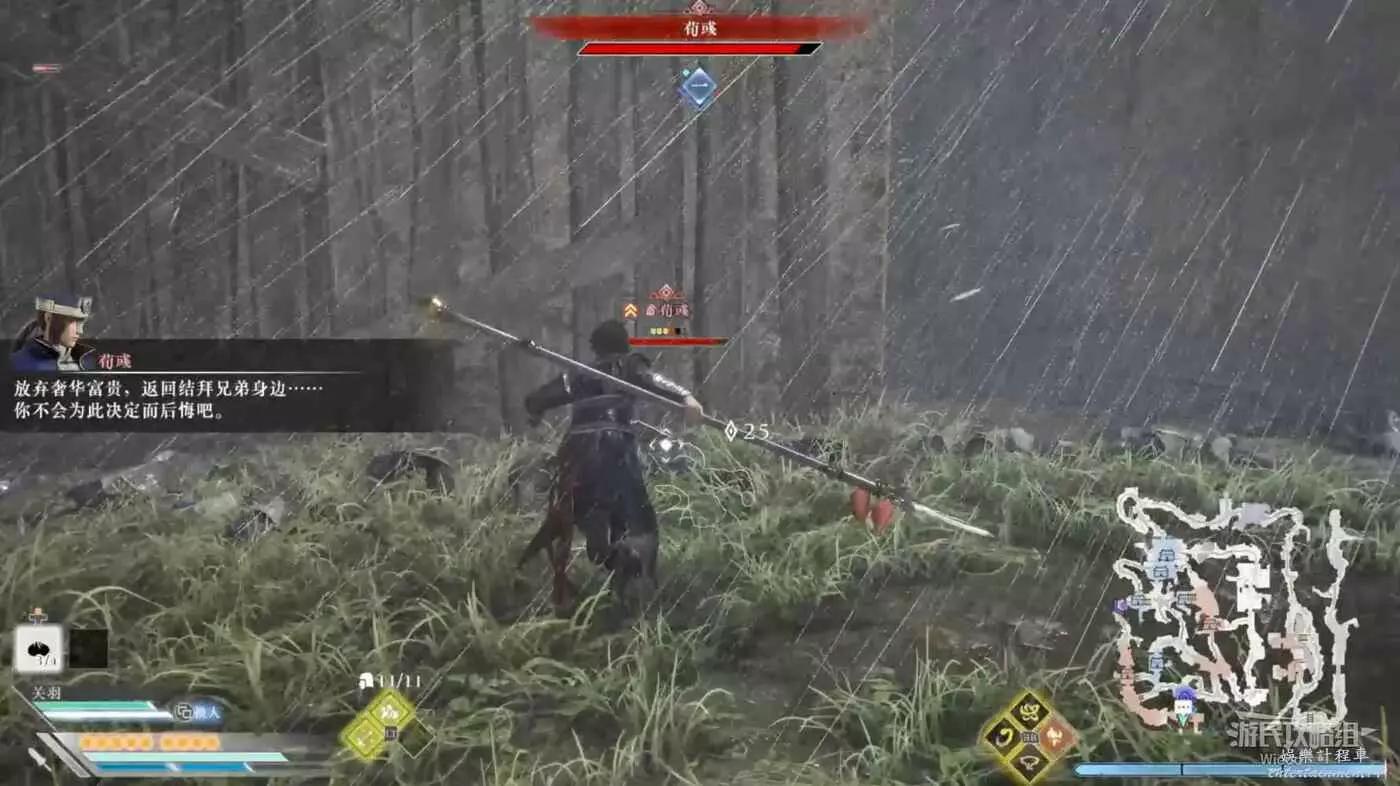 這場戰鬥直接沿著右邊的道路往上走,擊敗所有敵人後與左邊的張飛匯合,走到地圖左上角擊敗程志遠獲得勝利。