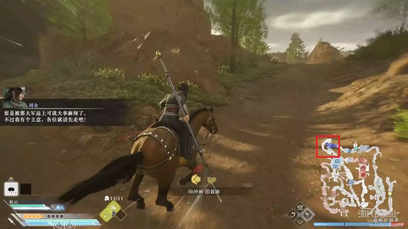 回到討伐軍營地與黃蓋對話可以提升情誼等級,然後與旁邊牽著馬的商人對話獲得馬匹,遠處的夏侯淵對話提高情誼等級。