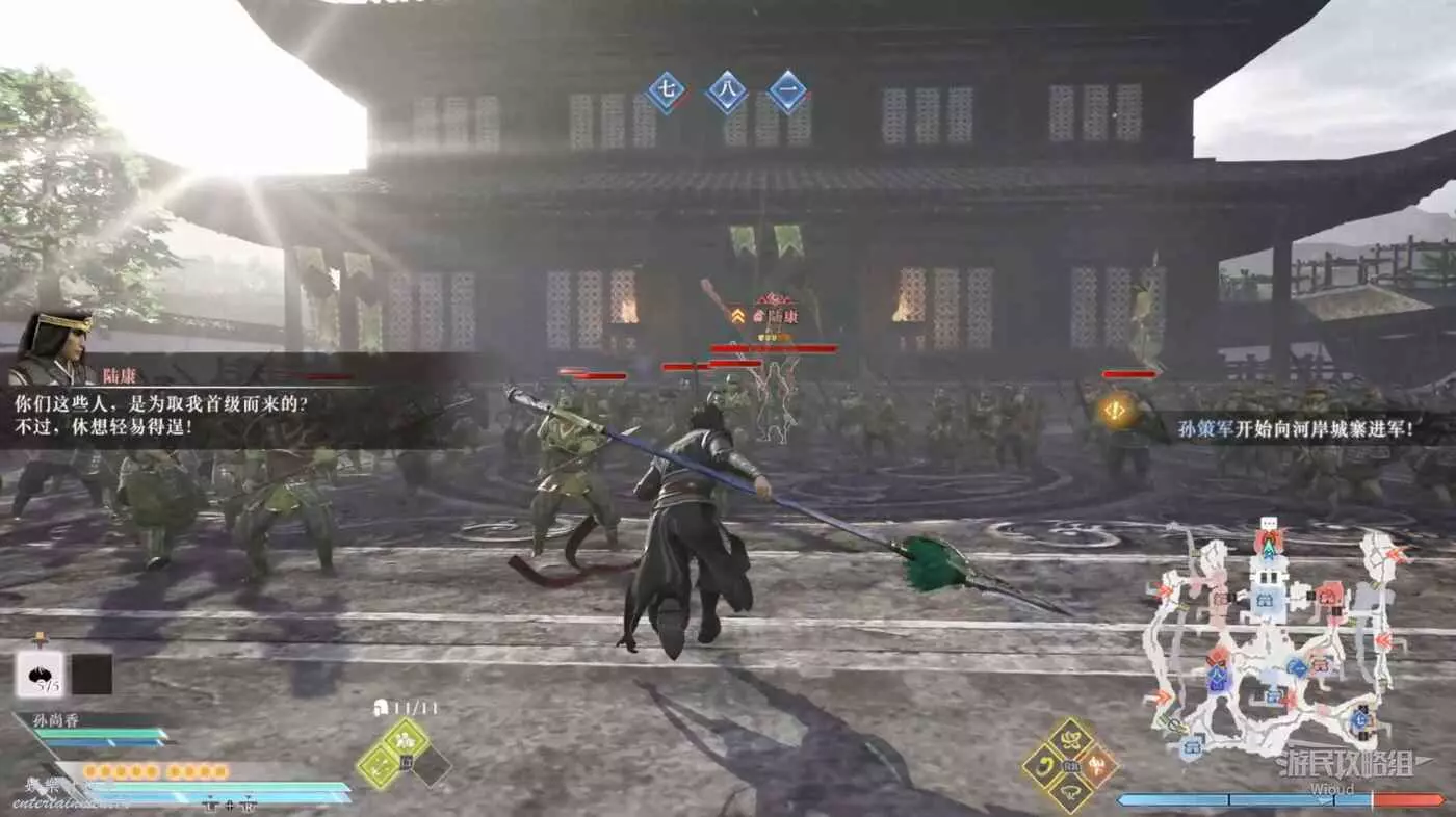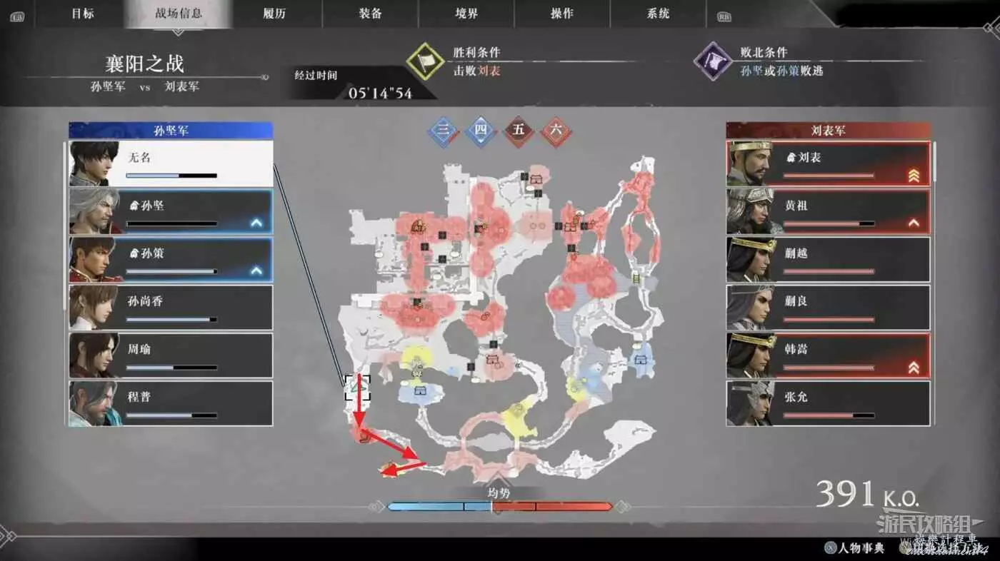 戰鬥開始先沿著右邊的道路攻佔右邊唯一的據點,完事跟隨孫堅往中間的據點移動,這時孫堅會吸引不少敵軍。