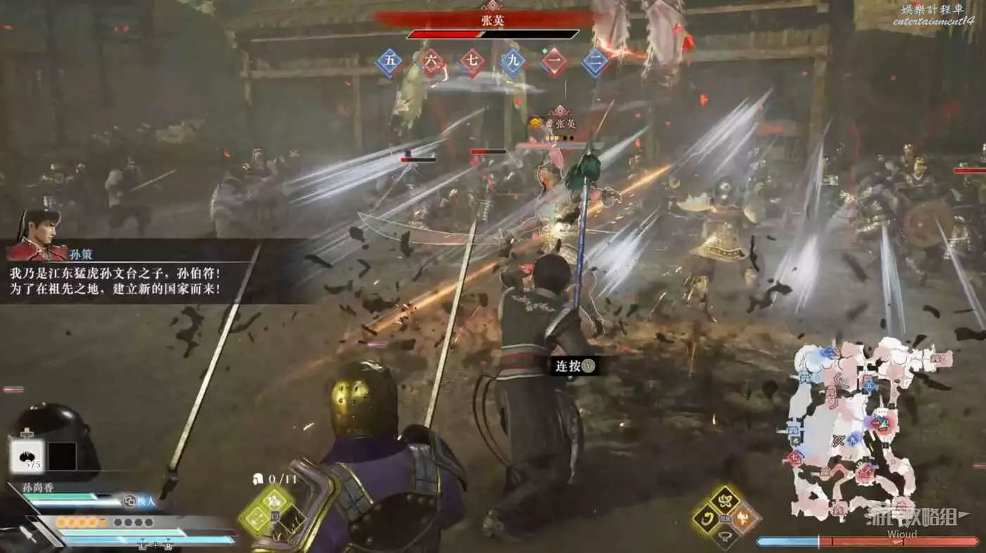 跟隨孫堅移動,不斷肅清跟隨孫堅的敵人,最後一直跟到左邊第一個據點的位置,保護孫堅並攻佔據點。