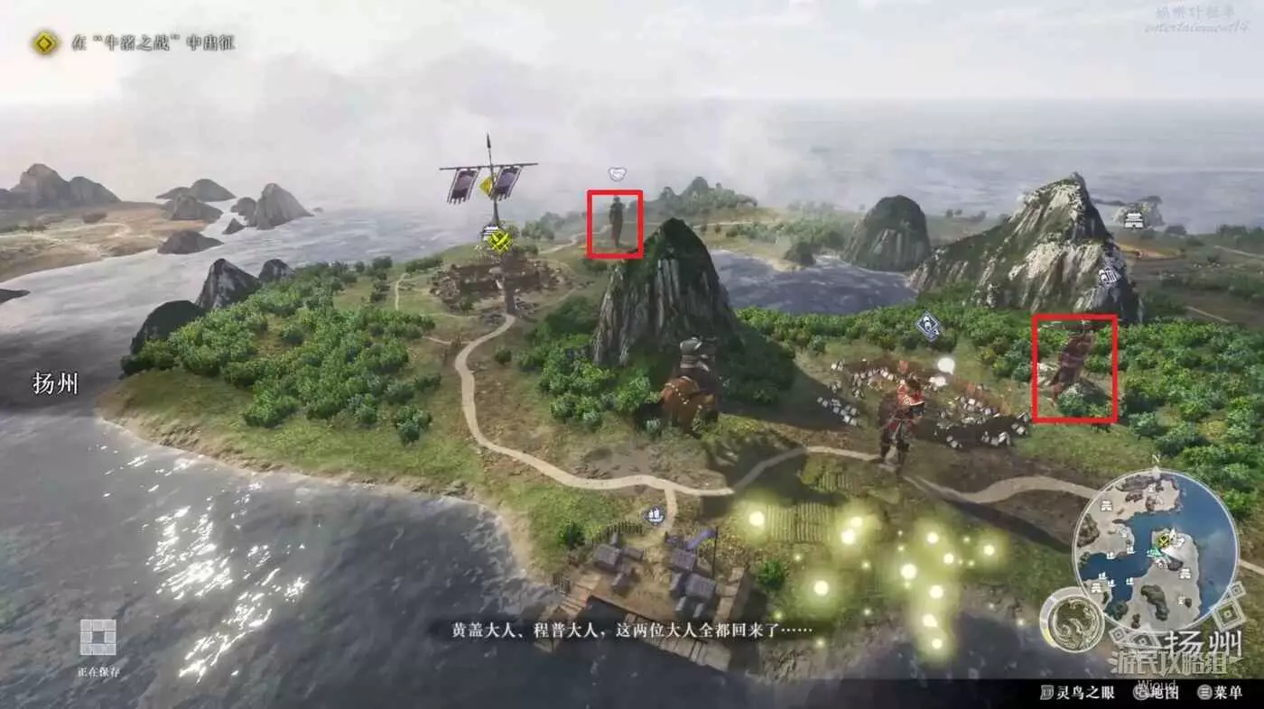 通過赤壁坐船來到對岸,與江夏旁邊的程普對話開啟任務【程普的模擬戰】。