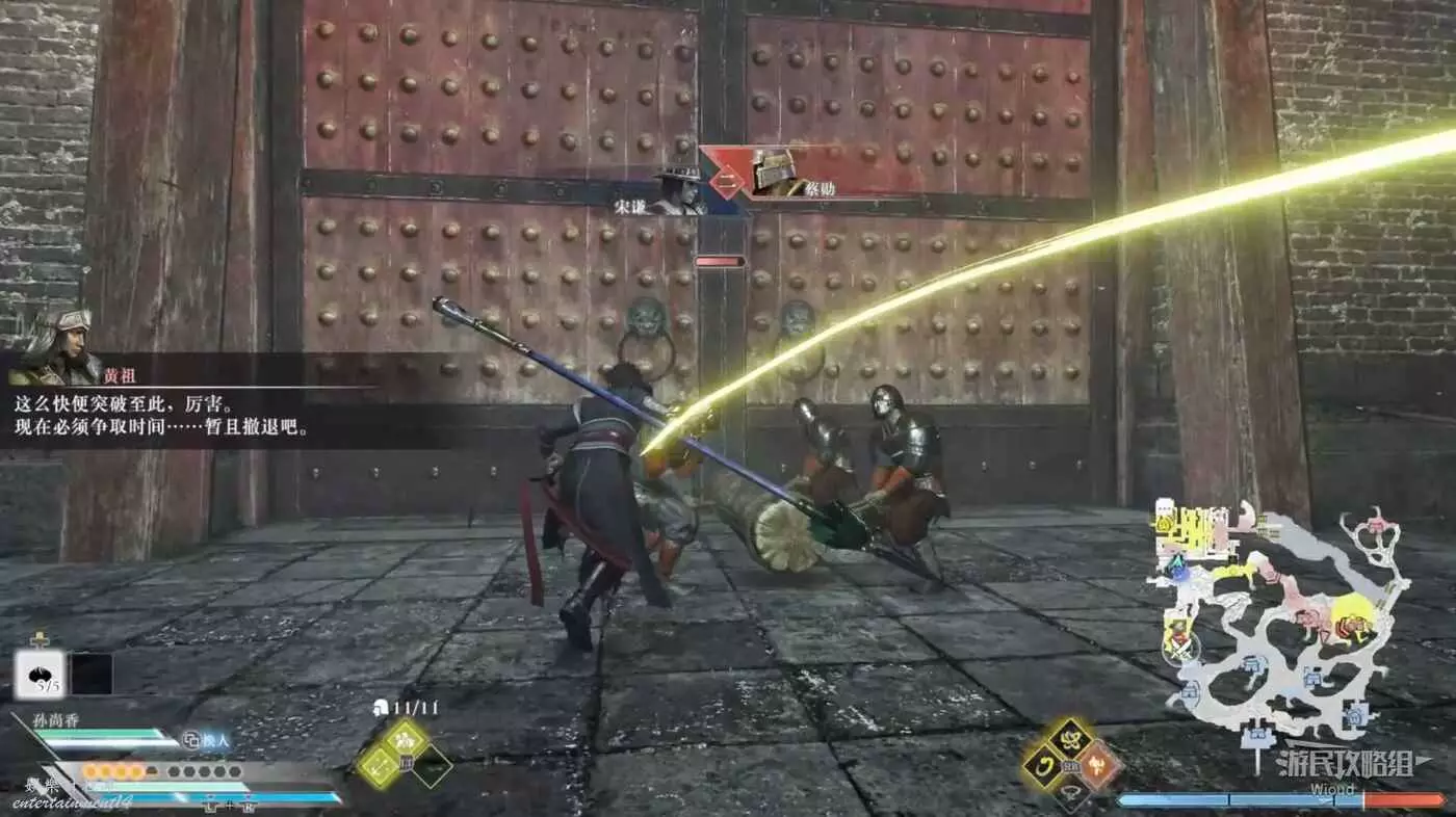 在敵人最後的據點會觸發一次關門大狗,此時我們已有方天戟在手,可以較為輕鬆的擊敗大本營的何儀。