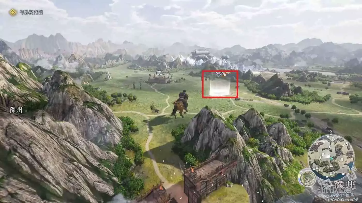 潁川左邊點亮傳送石【豫州】,右側黃色“!”互動觸發劇情,然後進入新出現的討伐軍陣地,過完劇情開啟【潁川之戰】。