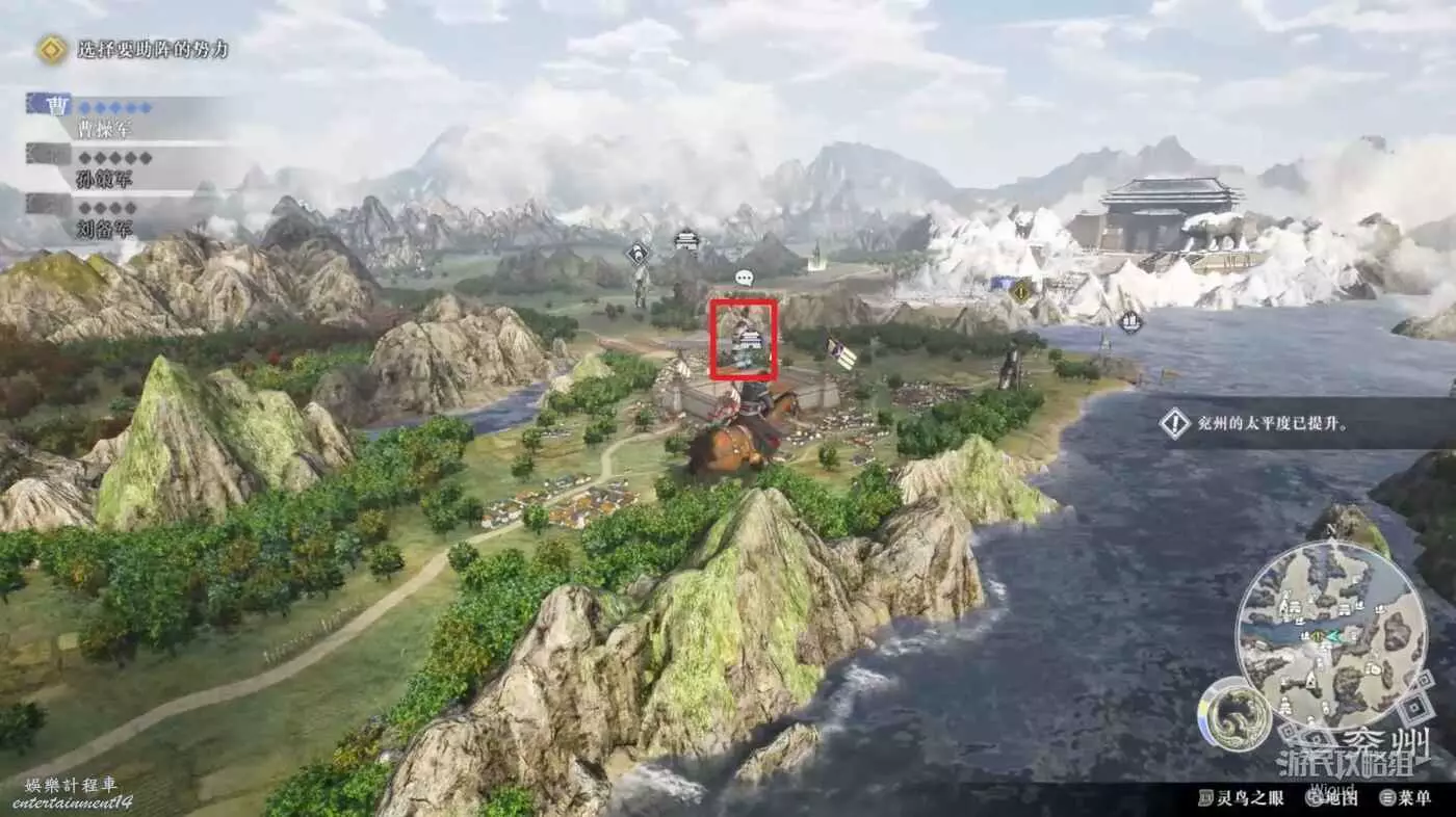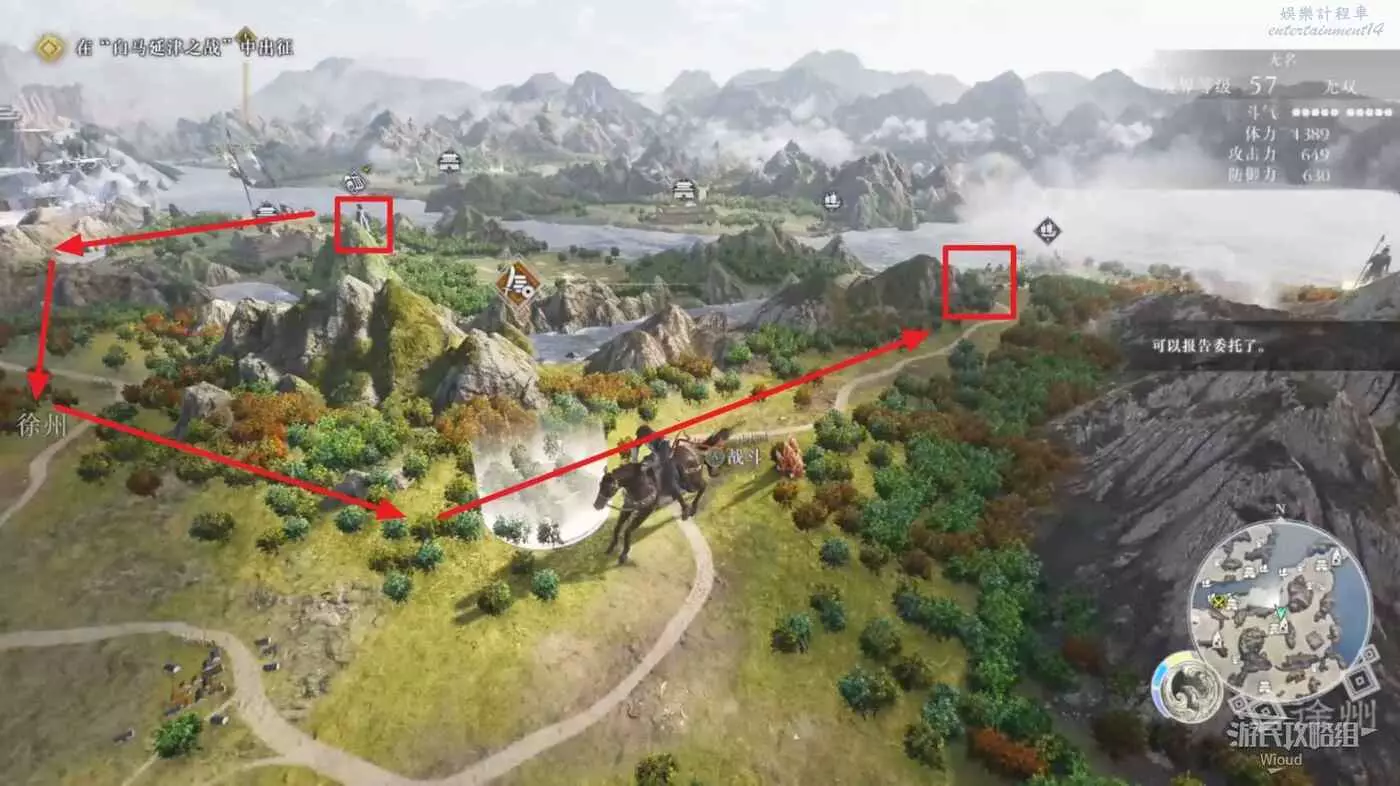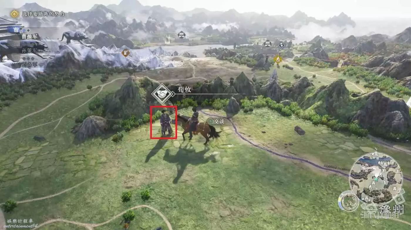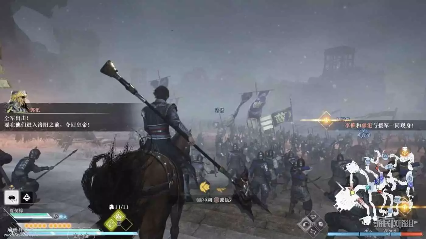 我們按照弱弱強的順序先去打左上角的大軍,無需直接幹掉大軍,擊敗大軍內的軍團長即可,當一個大軍被擊敗,剩餘兵力會往其他大軍的位置跑,這裡一定要騎馬攔截。