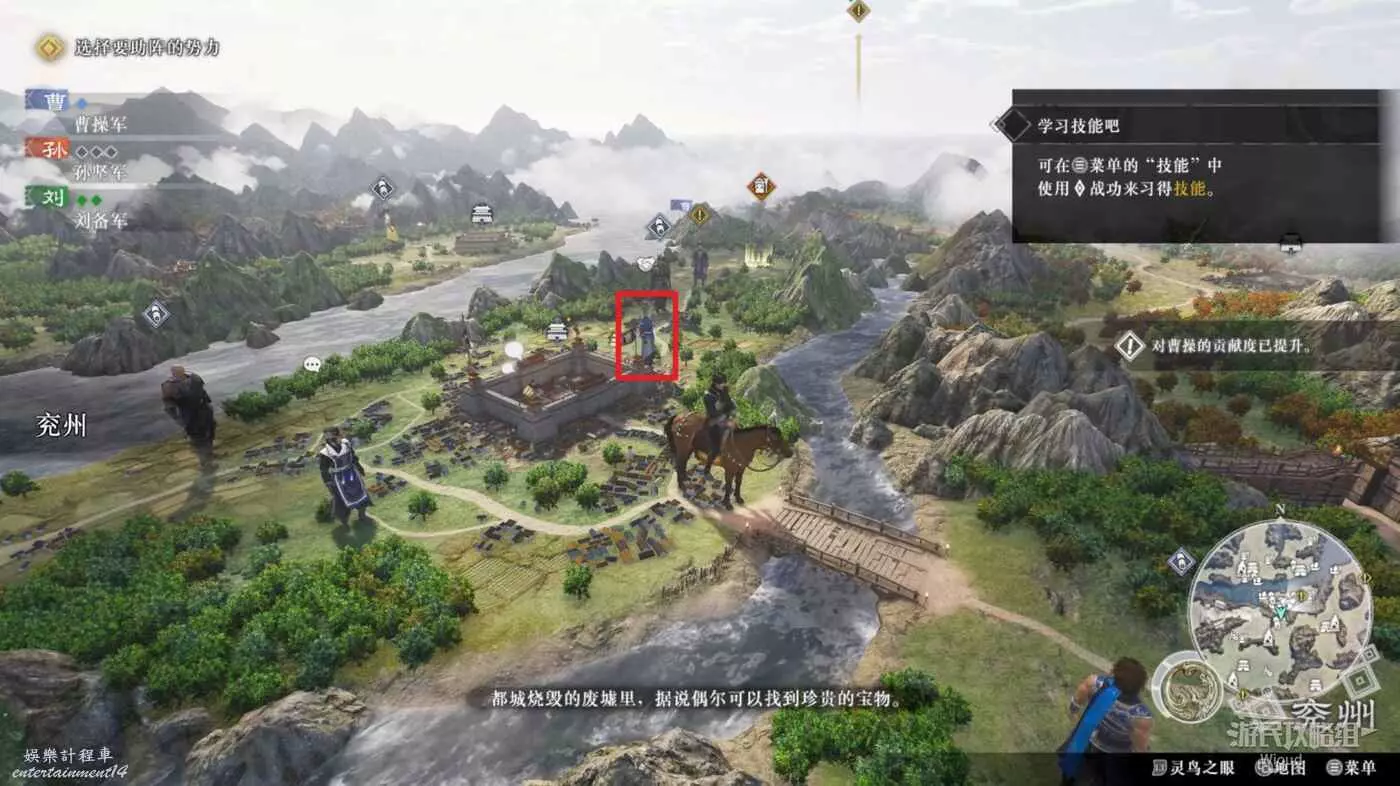 如果之前打通過某個故事線,兗州鎮壓戰依然需要與元化對話去村子過一下劇情,最後跟隨藍色“!”指引與曹操對話推進劇情。