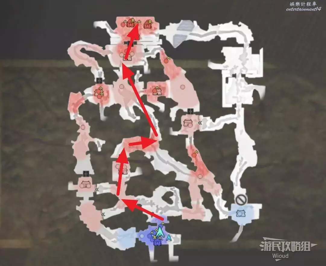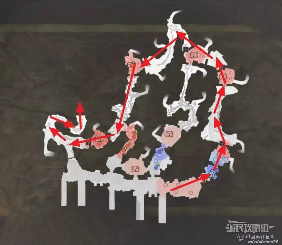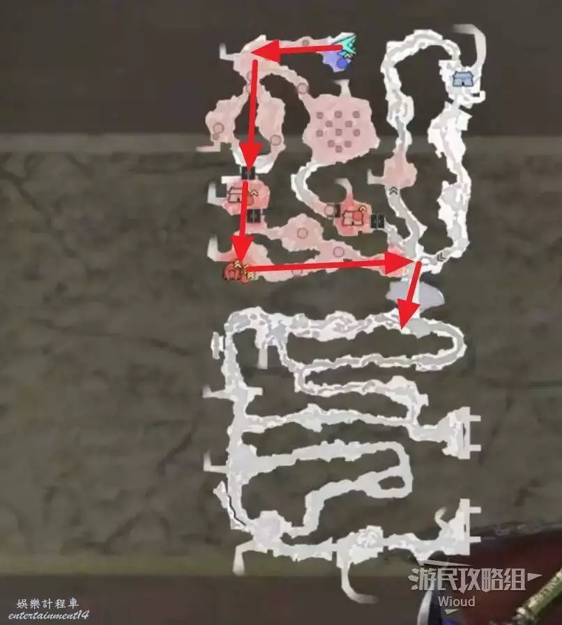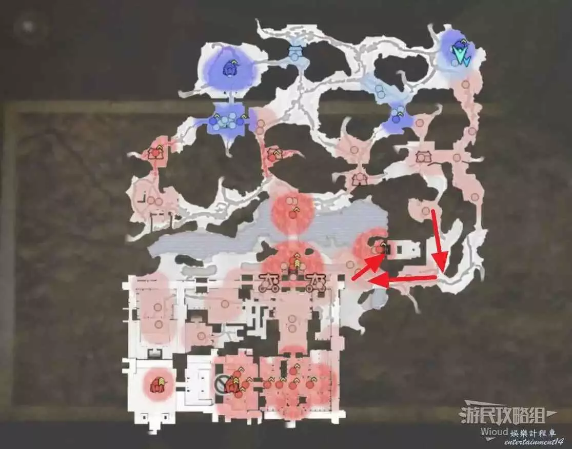 完成小沛逃亡戰後自動開啟【下邳之戰】,這場戰鬥的關鍵因素就是位於地圖右側的水閘,開局直接沿著下圖紅線移動到水閘的位置,擊敗這裡的敵人。