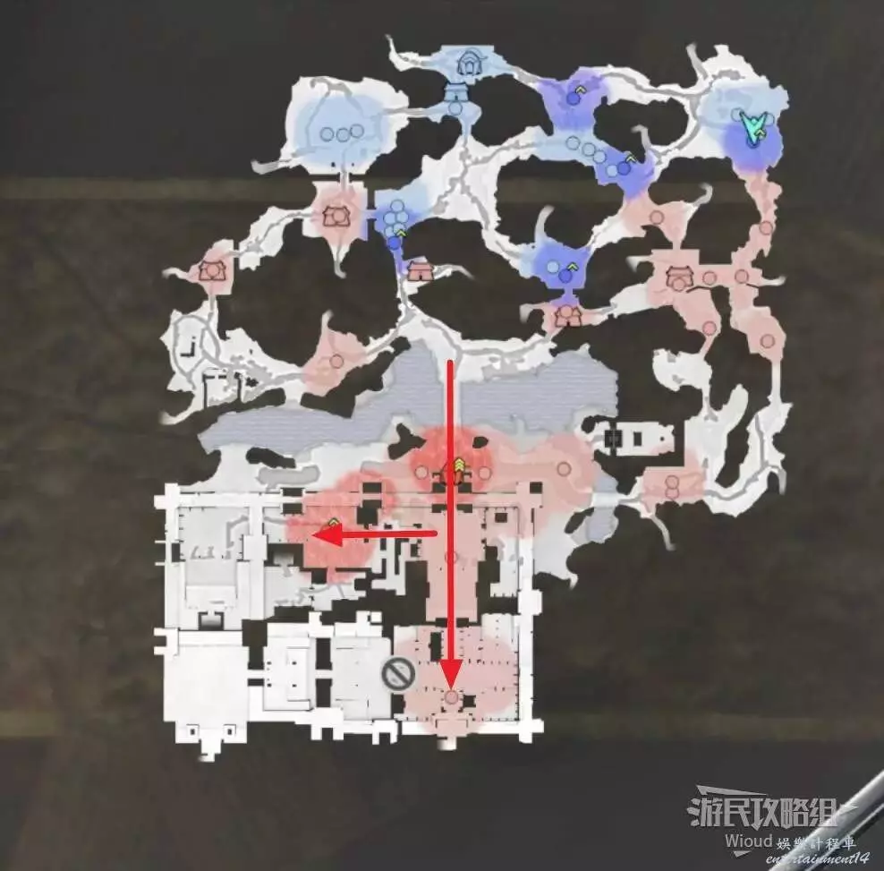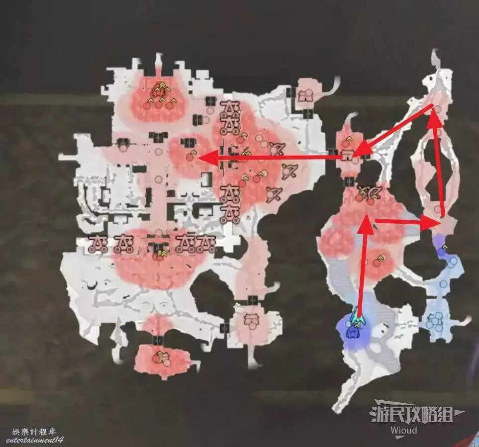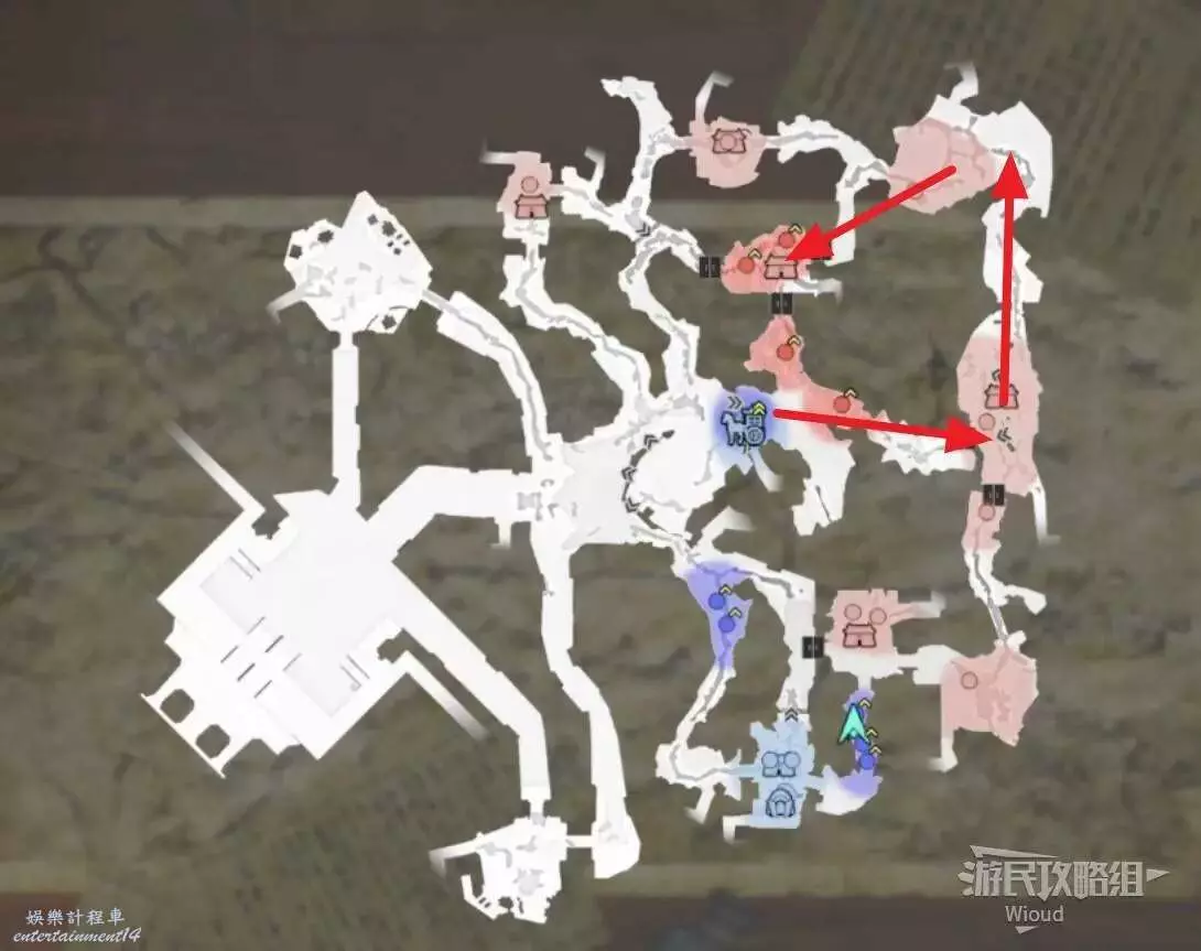 完事從右上角據跟隨箭頭往右下方移動,擊潰此處出現的援軍。