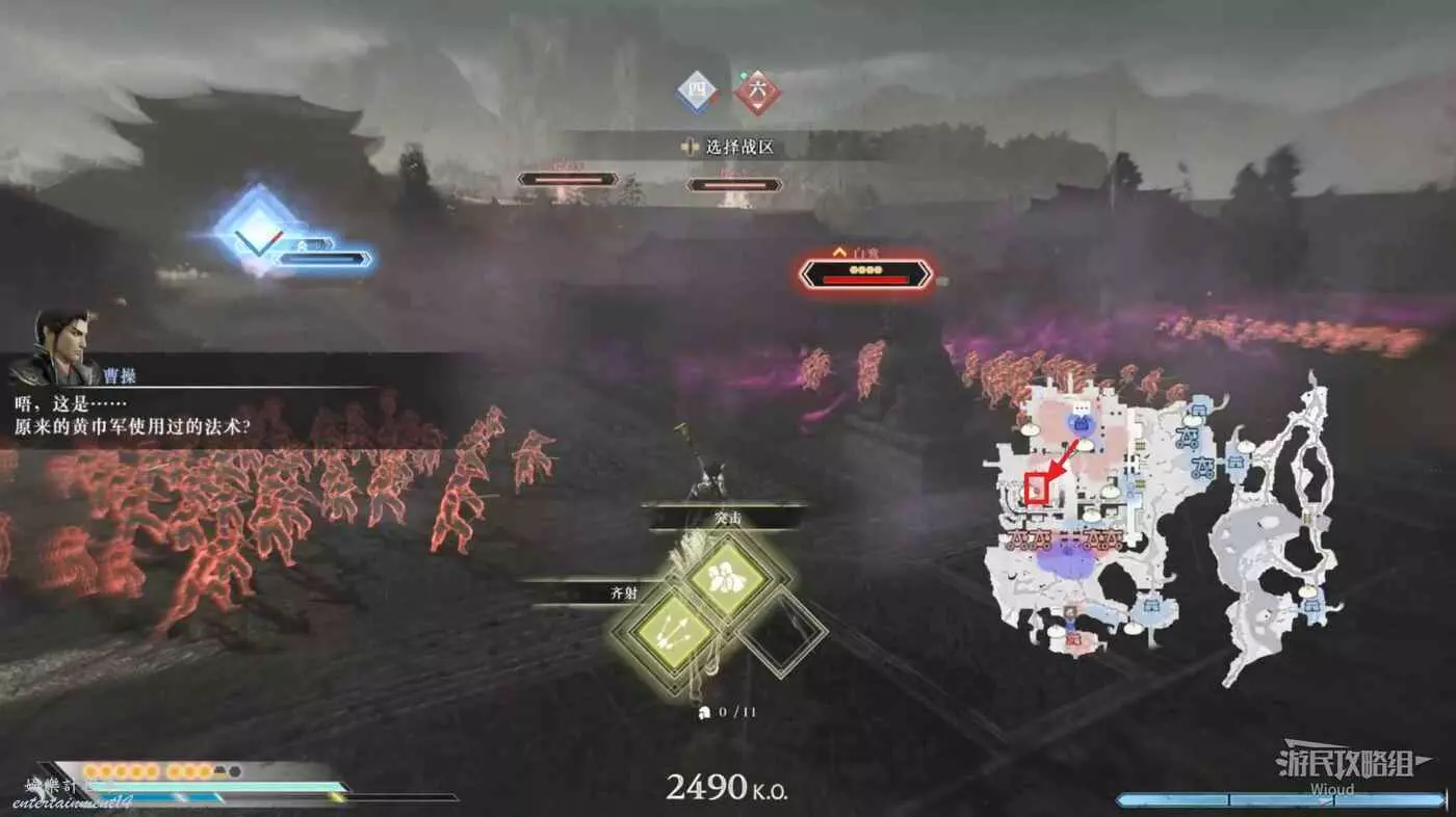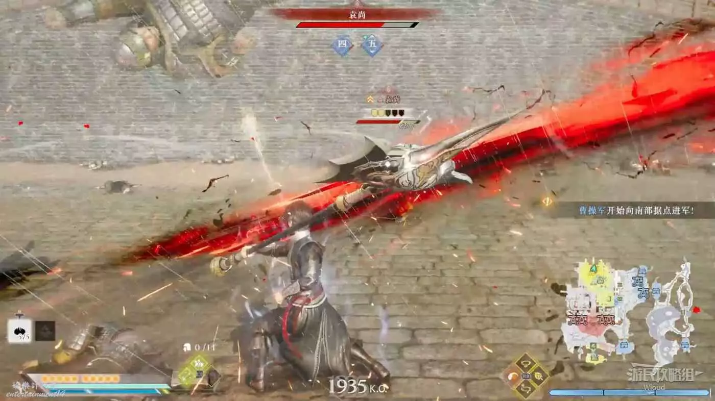不久後敵人會觸發戰意高昂,然後全軍朝曹操大本營的位置前進,如果前面打了不少據點,這裡得一個一個據點去支援。