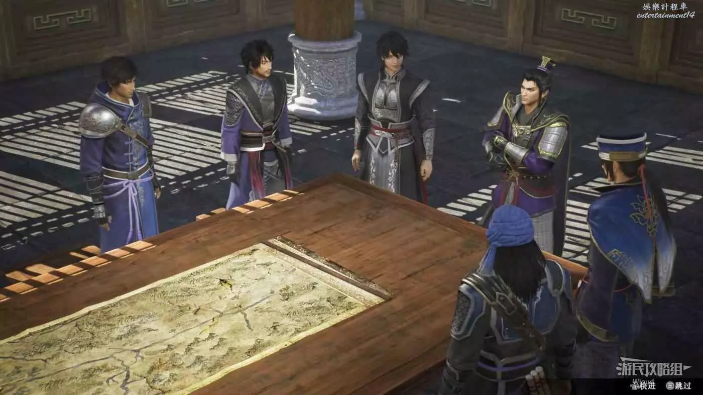 回到大地圖,在許與荀攸對話接取一個就地完成的委託,與郭嘉對話開啟地圖章的第一場戰鬥【】