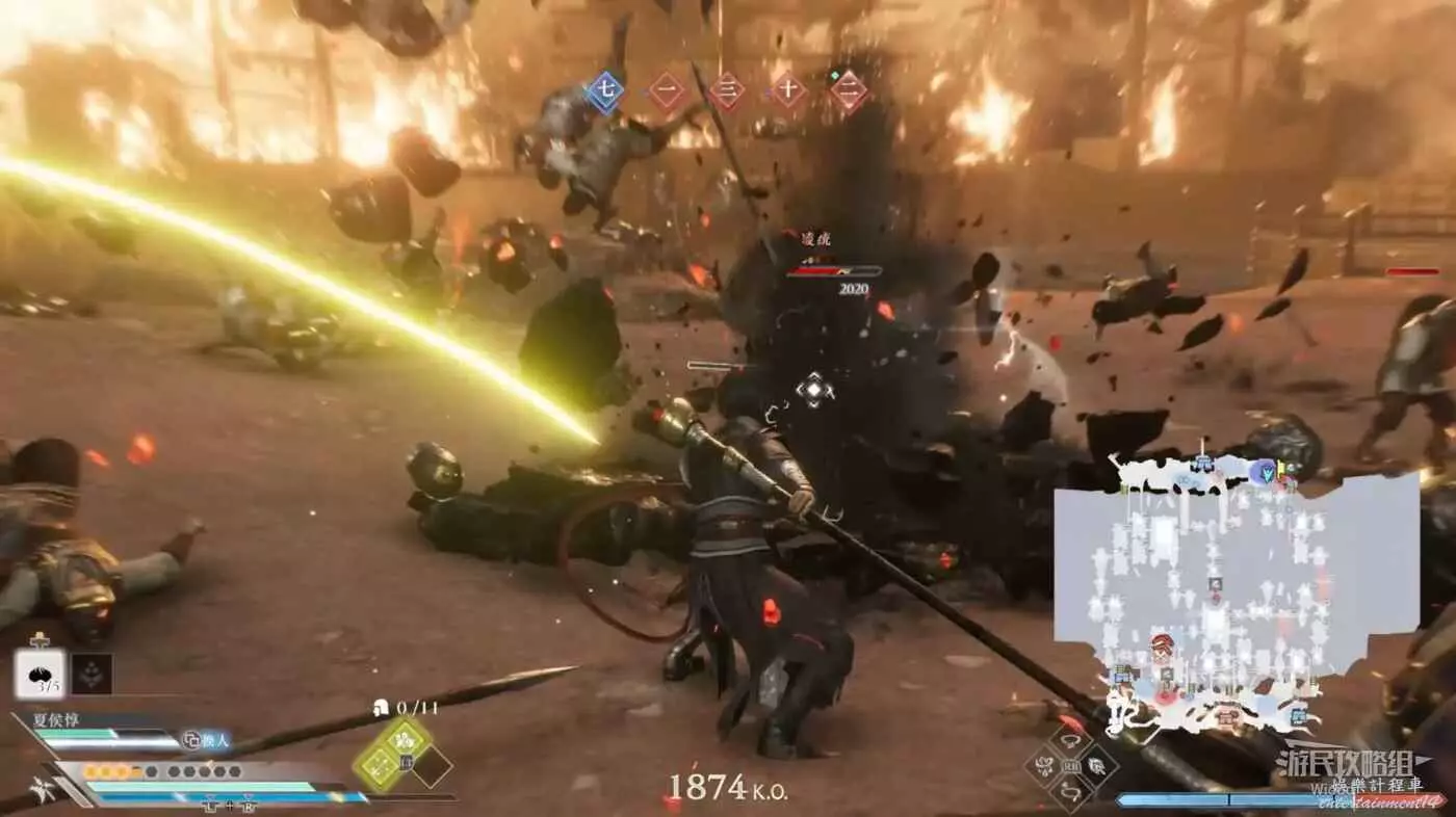 開局正常肅清周圍敵人,不久敵人會大舉進攻曹操的營地,我們只需要在曹操營地周圍盡可能的攔截敵人。