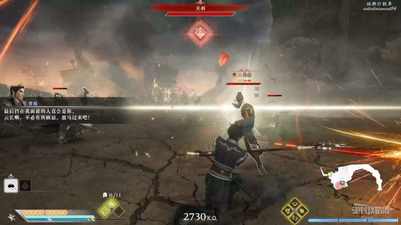 進入最後一個逃脫點遇到關羽堵路,保護曹操並將關羽擊敗完成曹操線的所有劇情。