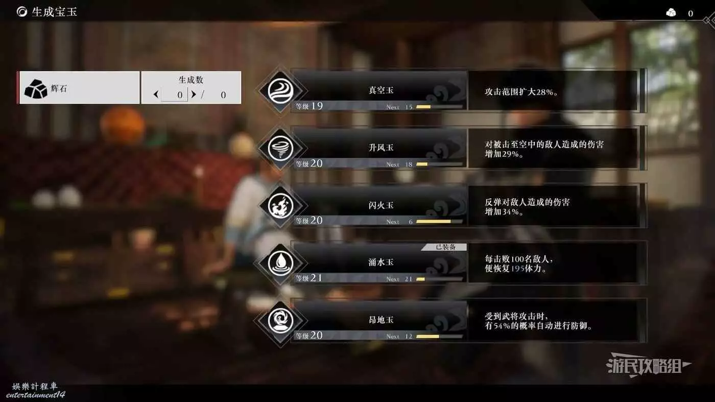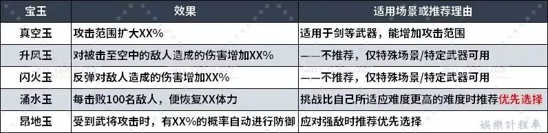 真 三國無雙 起源 寶玉效果及好用寶玉推薦 14 1 月 2025-01-14 廣告 作者:瑞破受氣包 來源:遊民星空 關於寶玉 寶玉是僅可裝備1顆的特殊裝飾品(可以在暫停功能表/戰前準備中更換,在旅店中生成)。裝備後可對武器攻擊附加特殊效果。僅可通過輝石生成寶玉。1個輝石可以生成1顆寶玉,將從五種寶玉中隨機生成一種。獲得相同種類的寶玉後會強化該寶玉。 在生成寶玉時,有可能觸發【碩果累累】效果。碩果累累被觸發時,單個輝石可生成比通常更多的寶玉。在生成寶玉時,靈鳥之眼有時能夠發現輝石中寶玉的可能性。此時進行生成,便只會生成對應的寶玉。 寶玉效果及推薦