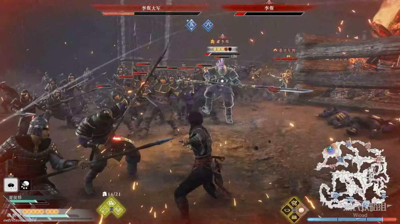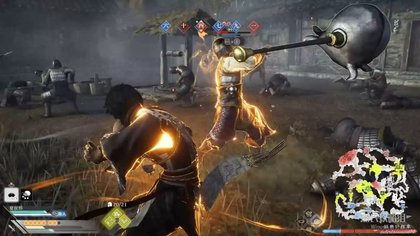 敵人的武將血條上會有盾牌樣式的外功量表,類似於其他遊戲裡的韌性槽,通過攻擊可以削減敵人的外功量表。