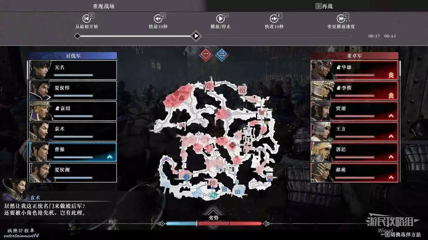 當戰鬥中出現失誤死亡或關鍵武將敗退時戰鬥會結束,在戰鬥結束頁面可以進入重現戰場模式。