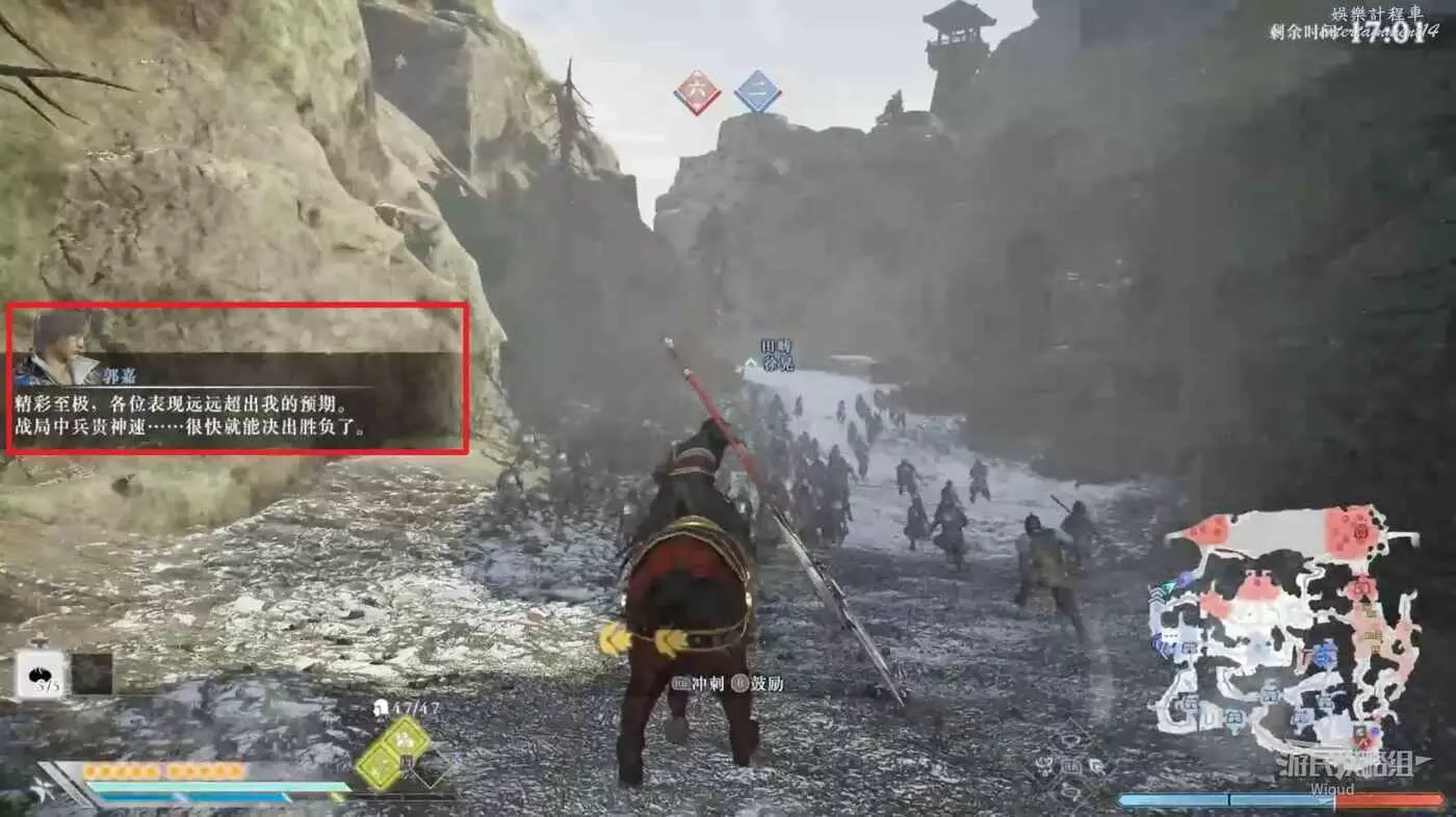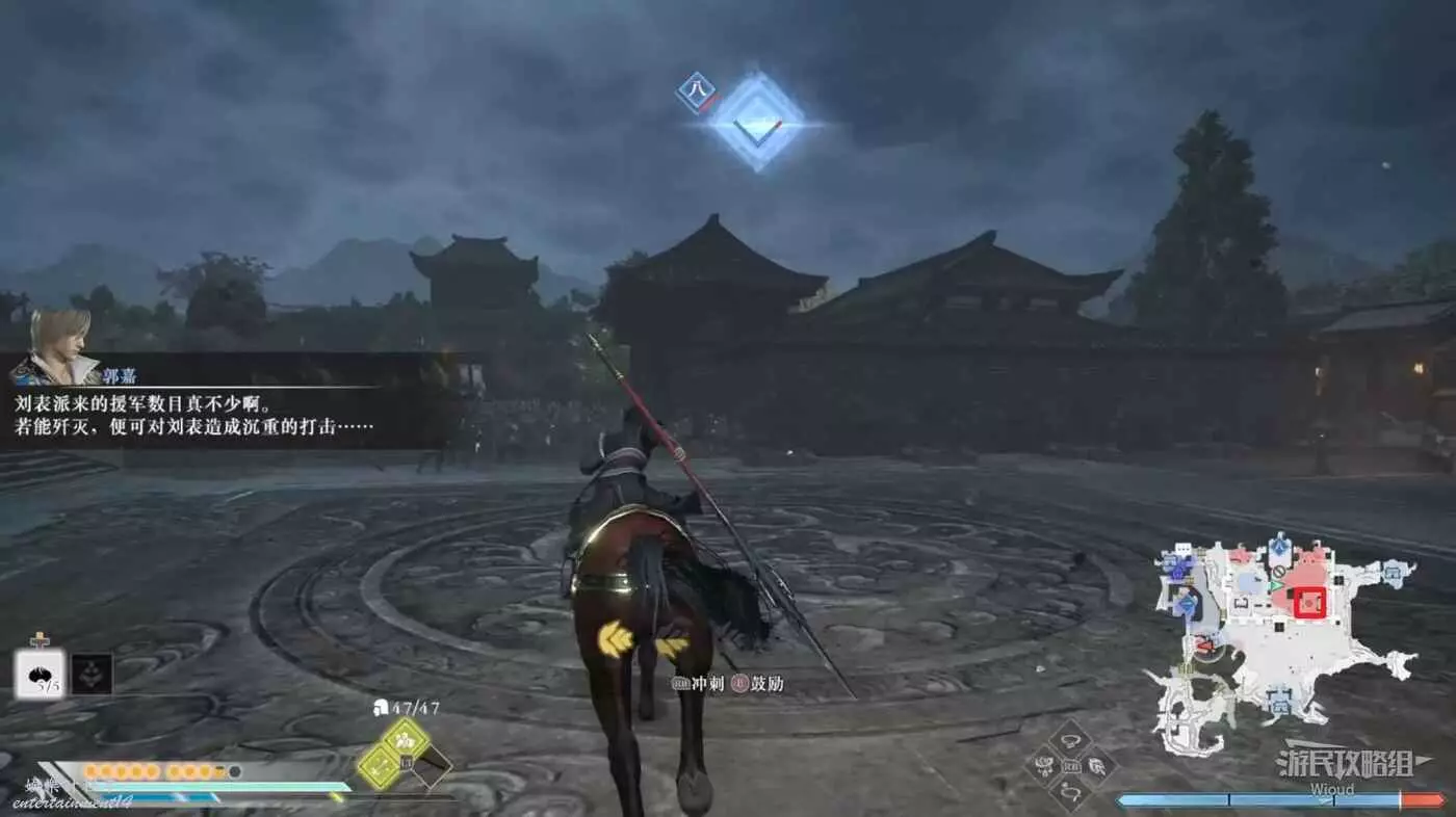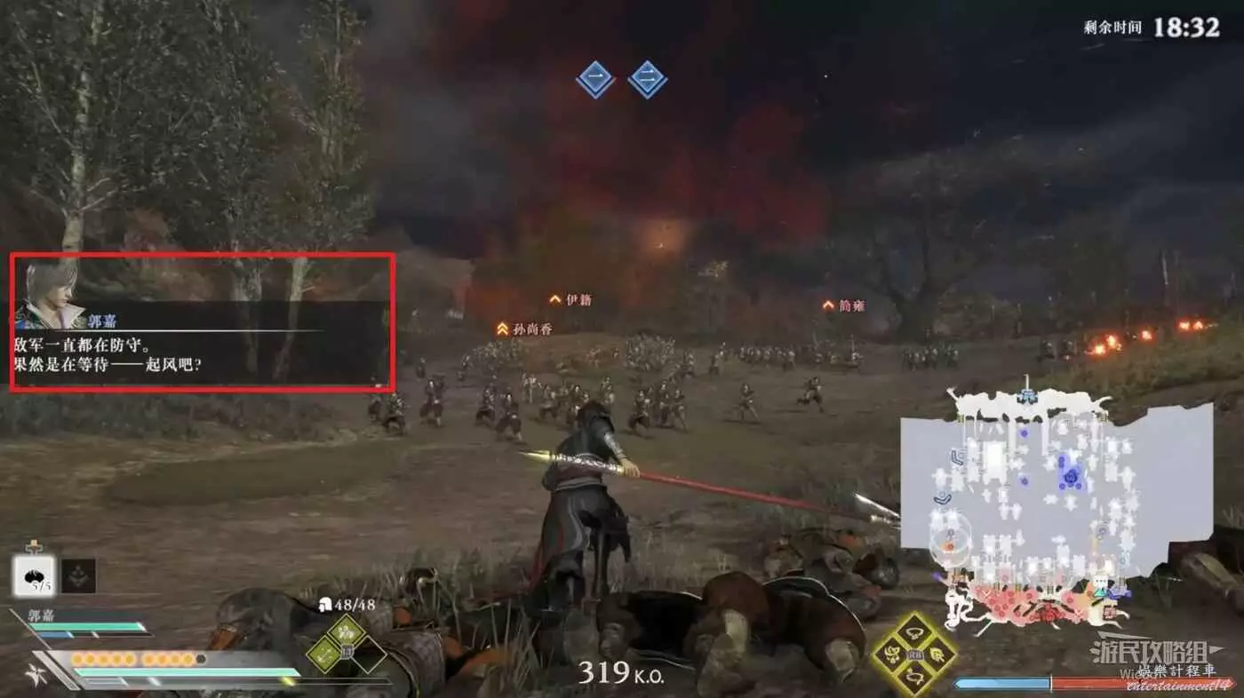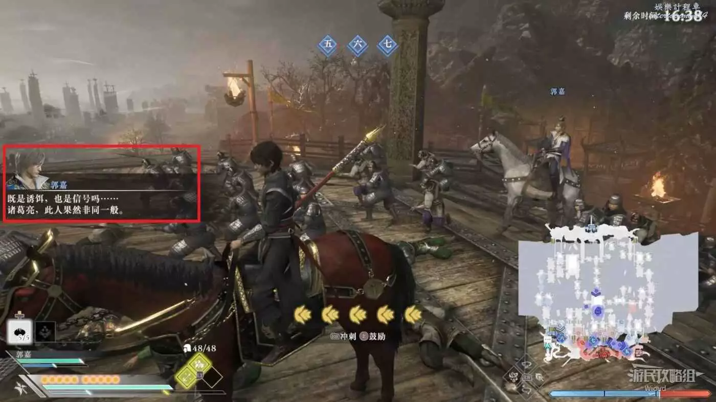 繼續等待一會郭嘉會開始分析現場局勢,等待郭嘉說完後地圖會出現一個旗幟標點。