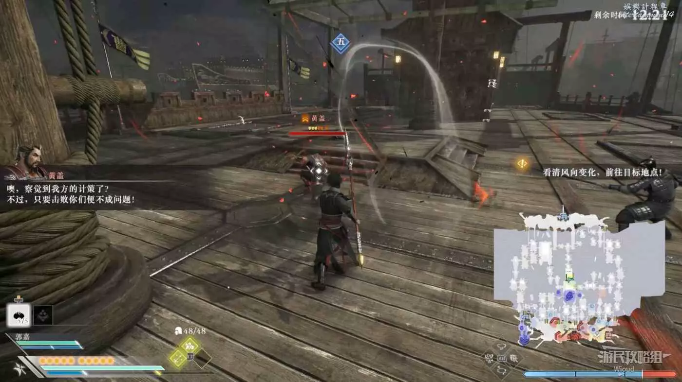 我們需要在風向發生改變時前往標點處,此處會觸發與黃蓋的戰鬥。