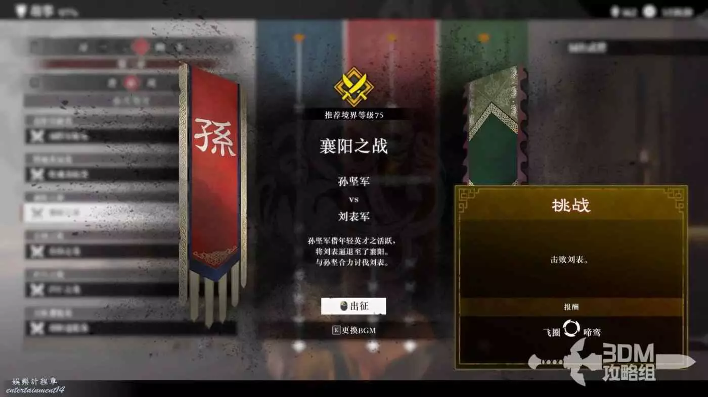 完成“勇戰無雙之人”難度下的【襄陽之戰】,並且完成【擊敗劉表】。