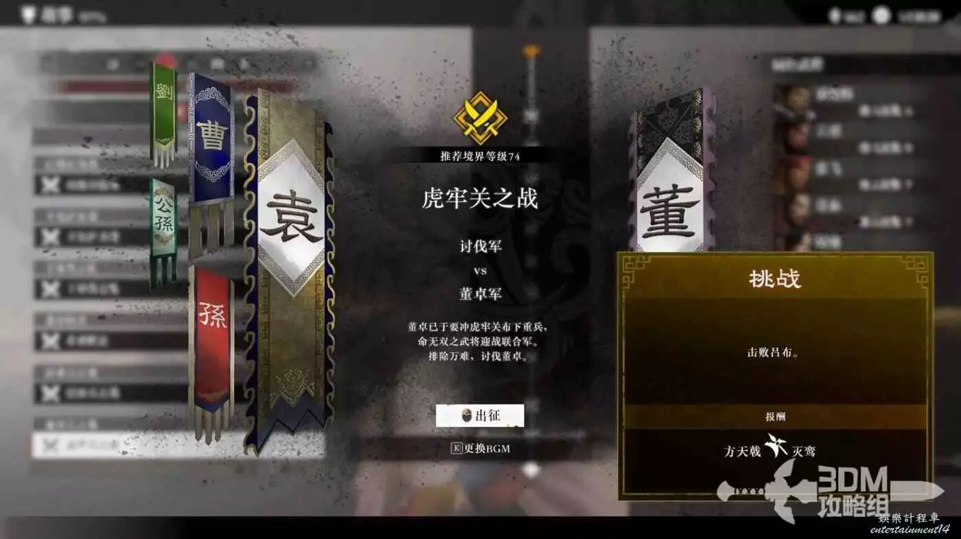 完成“勇戰無雙之人”難度下的【虎牢關之戰】,並且完成【擊敗呂布】。