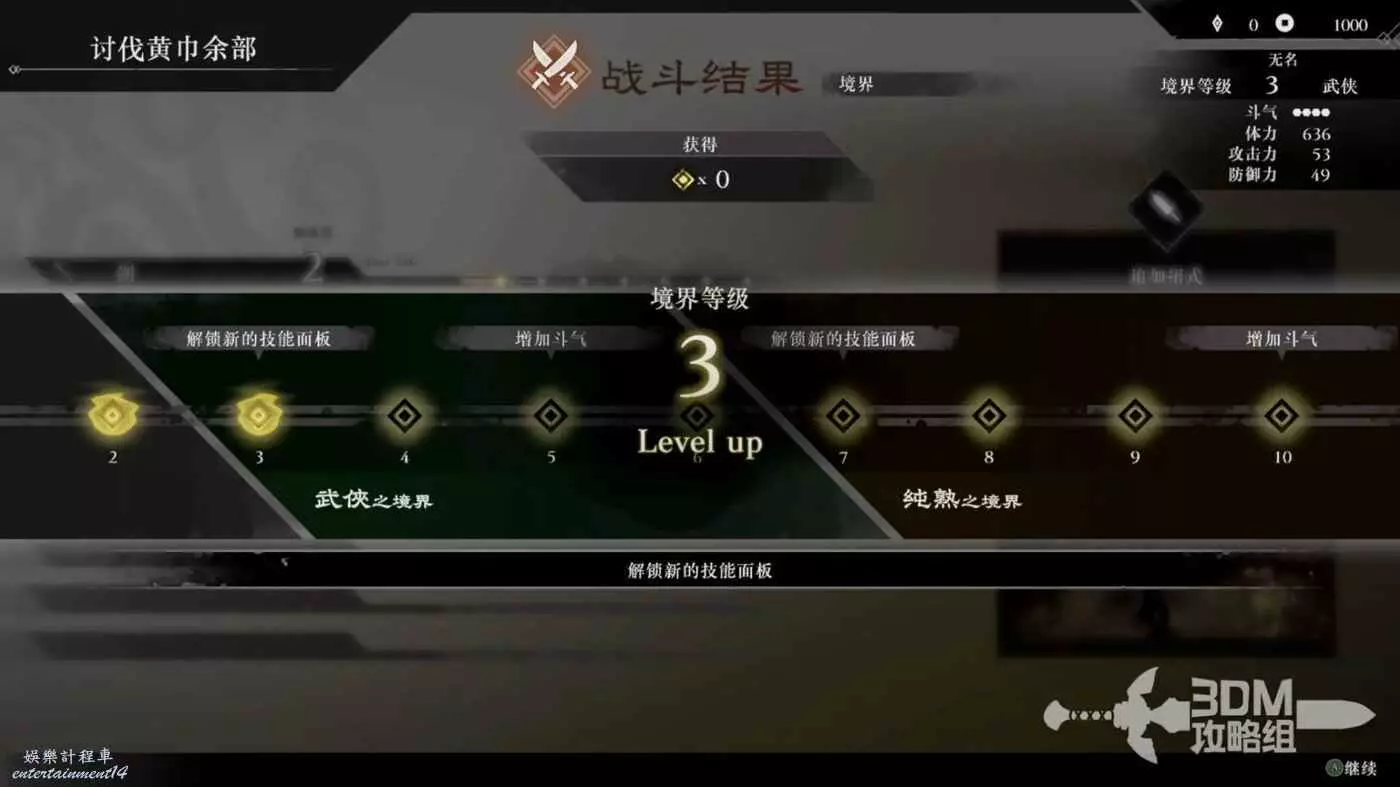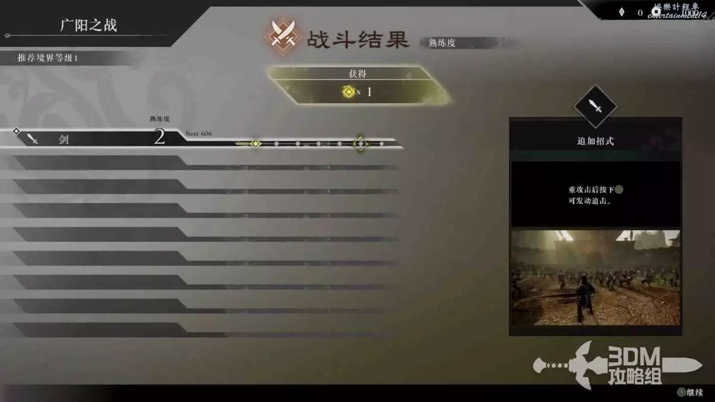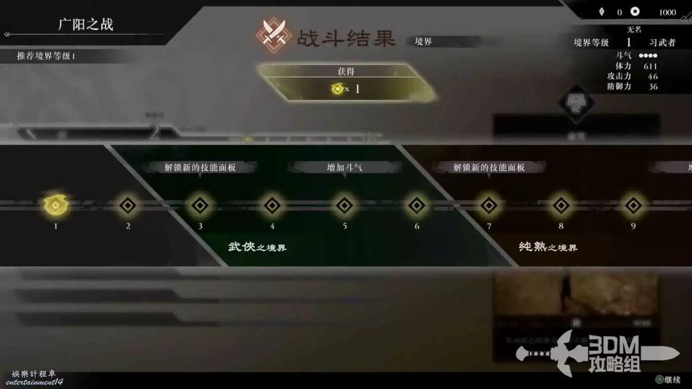 完成本戰後,會解鎖武器熟練度和境界系統。