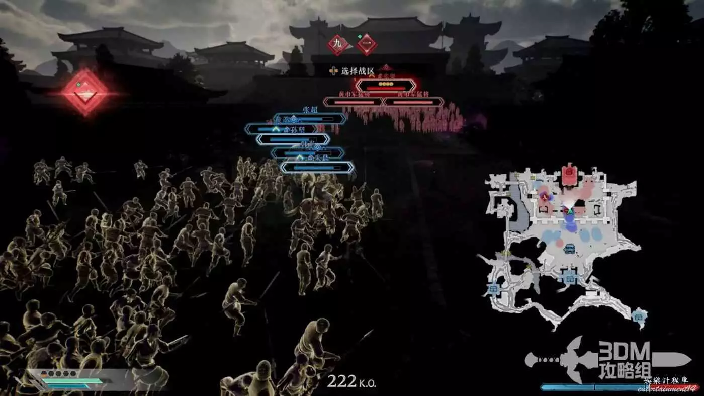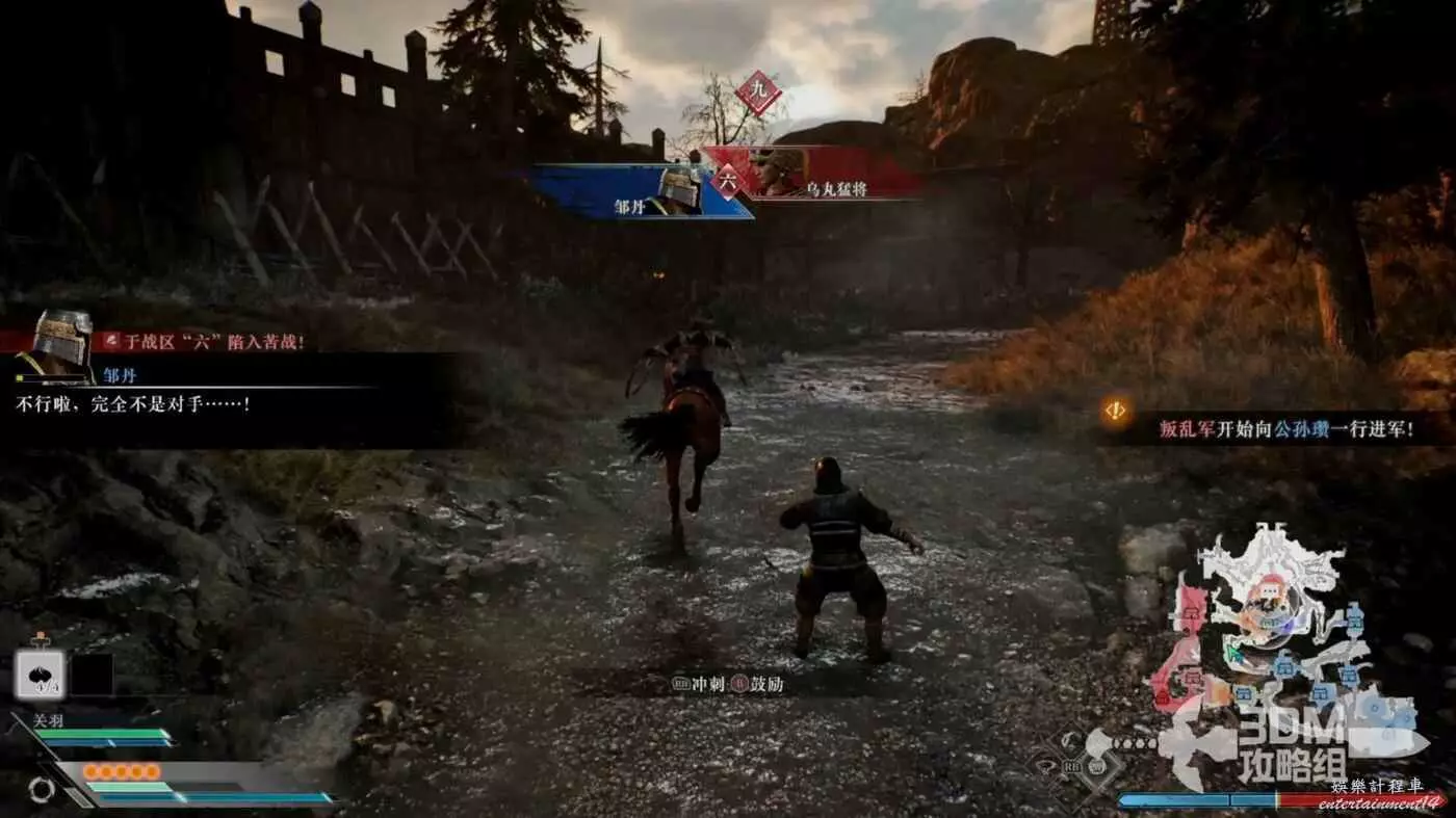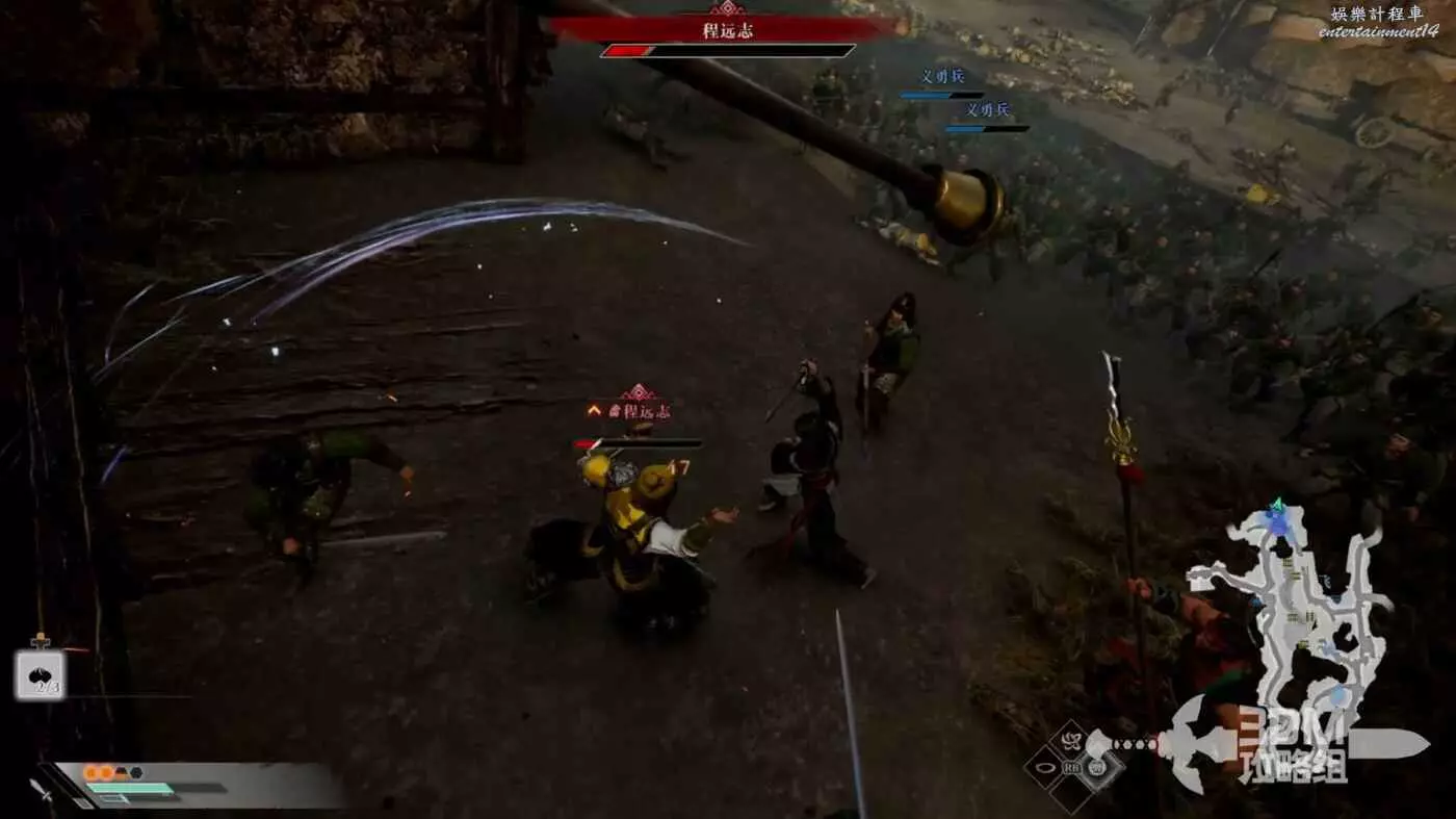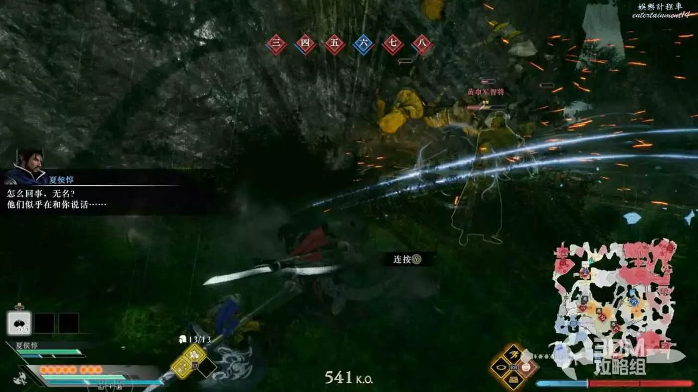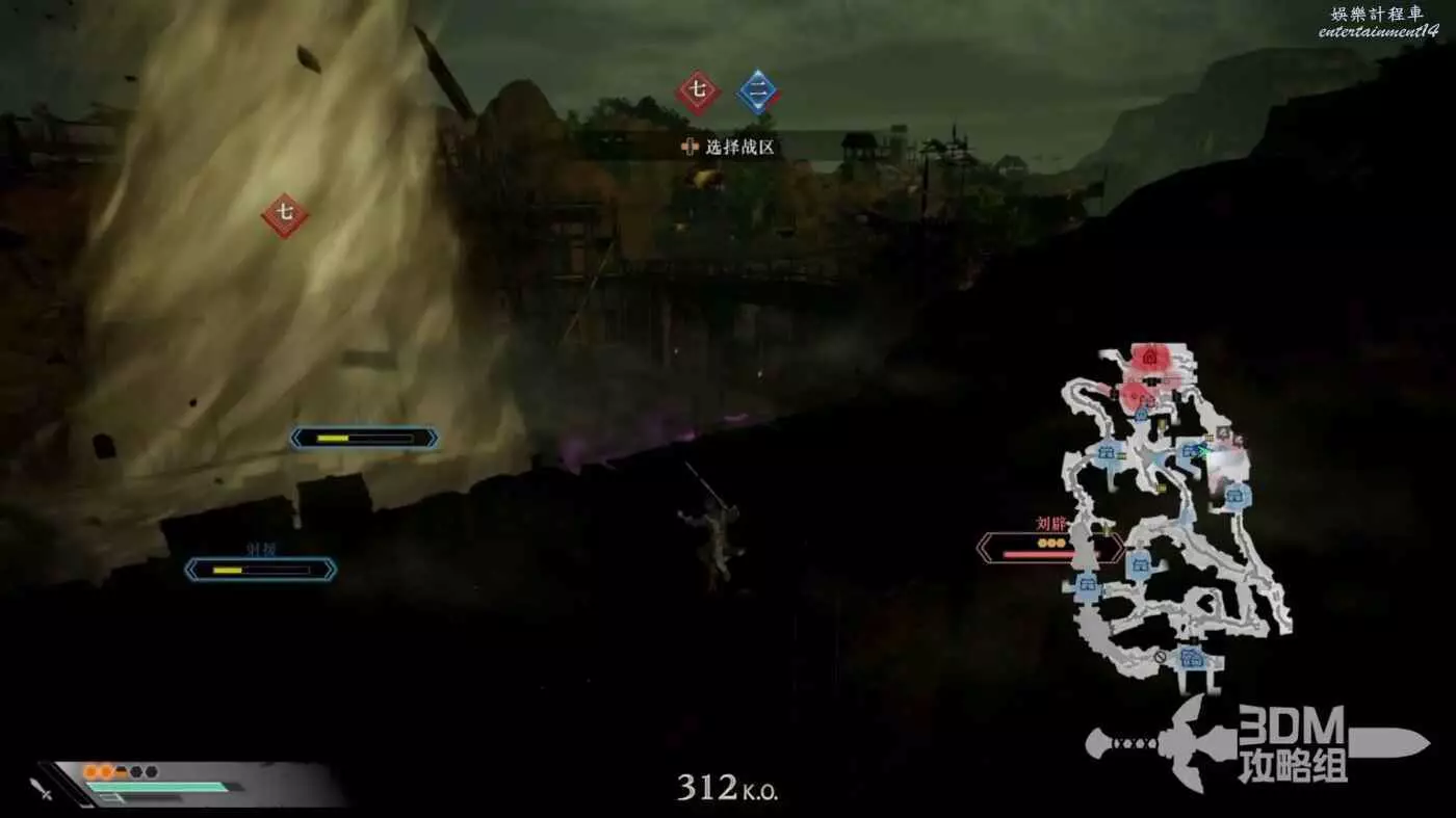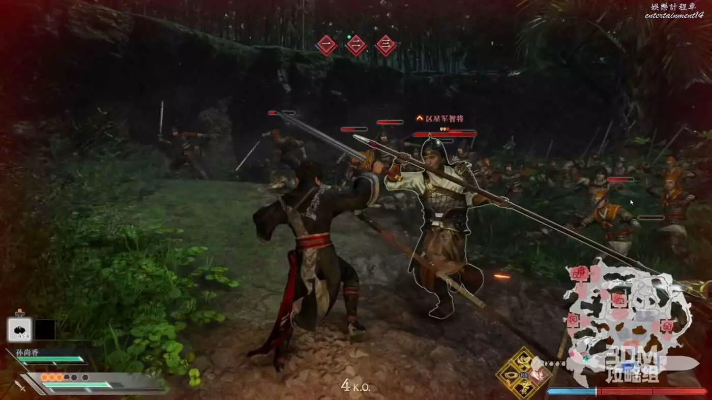 此處會受到多個敵人將領的攻擊,要注意閃避/防禦。同時小兵有時會受到地方將領的指示,身上會冒出紅光,此時的攻擊無法被防禦,需要閃避或者使用帶有發勁的武藝才能抗衡。