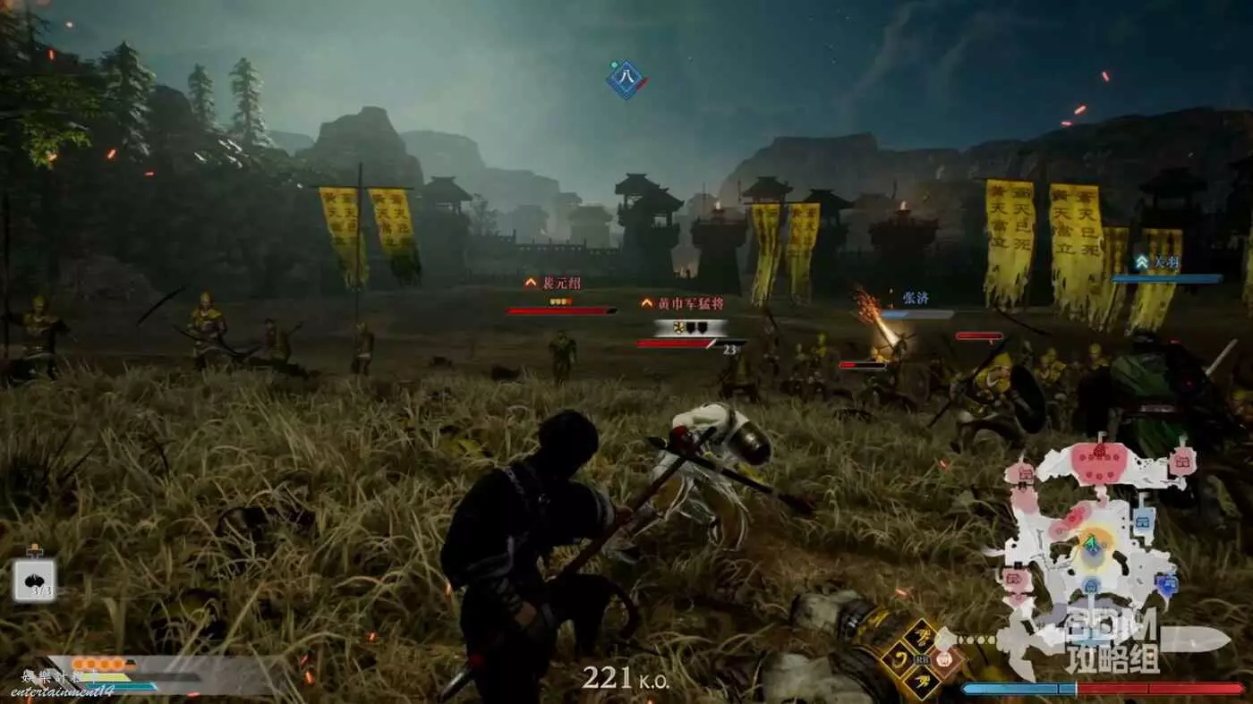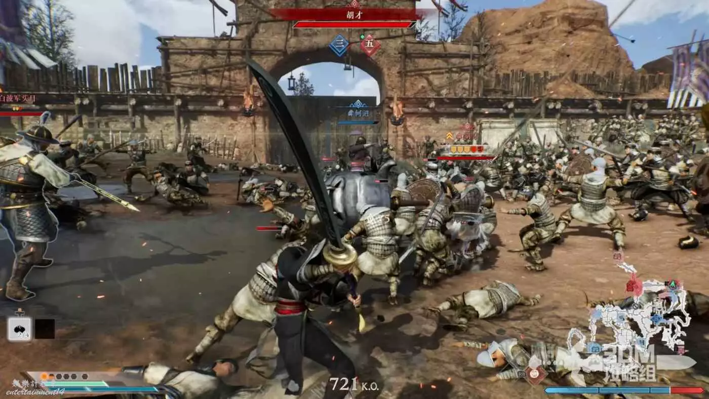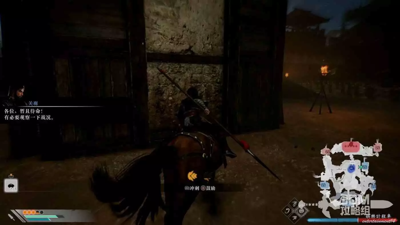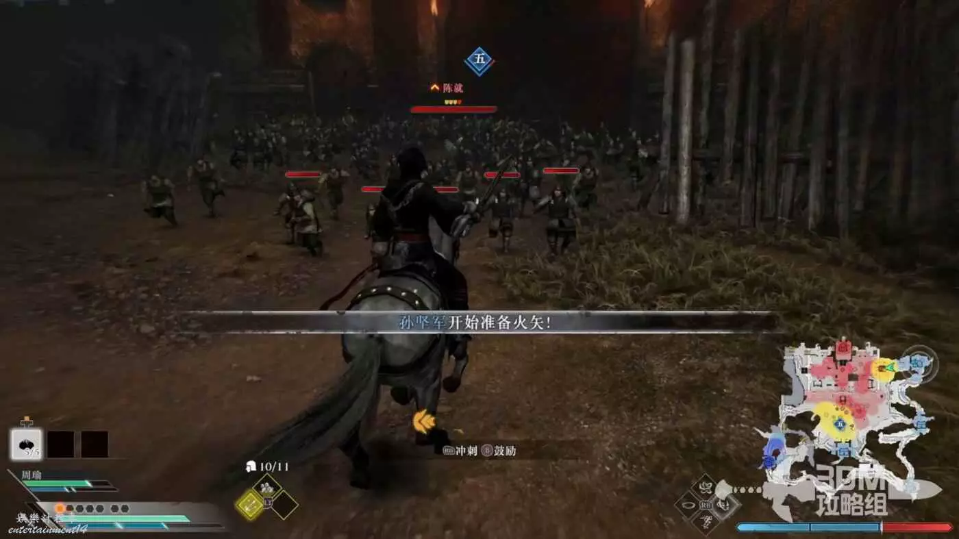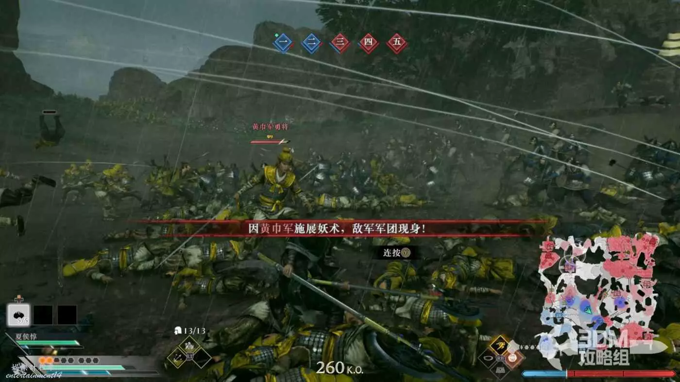 此處會受到多個敵人將領的攻擊,要注意閃避/防禦。同時小兵有時會受到地方將領的指示,身上會冒出紅光,此時的攻擊無法被防禦,需要閃避或者使用帶有發勁的武藝才能抗衡。