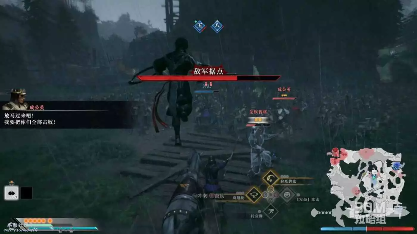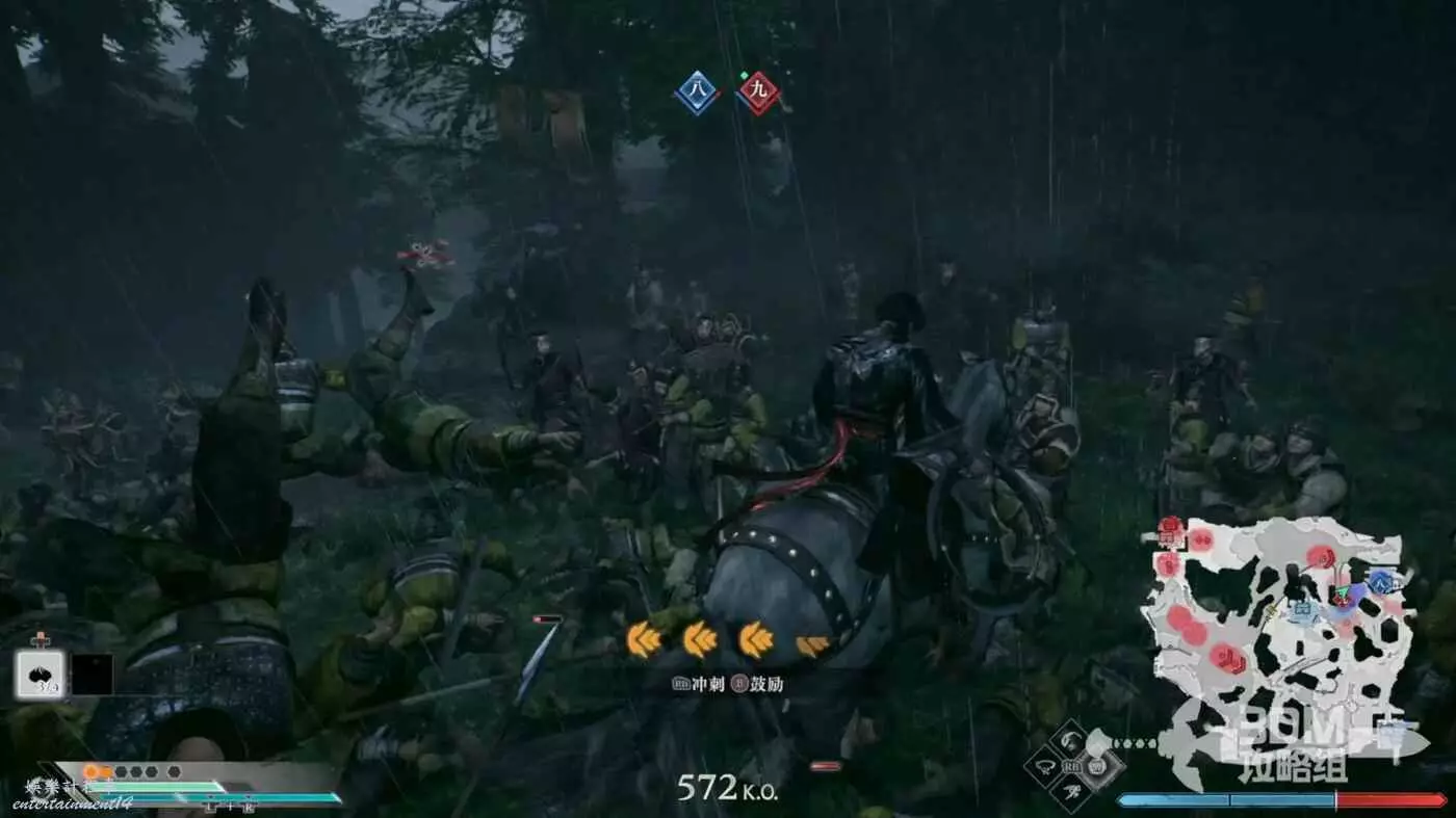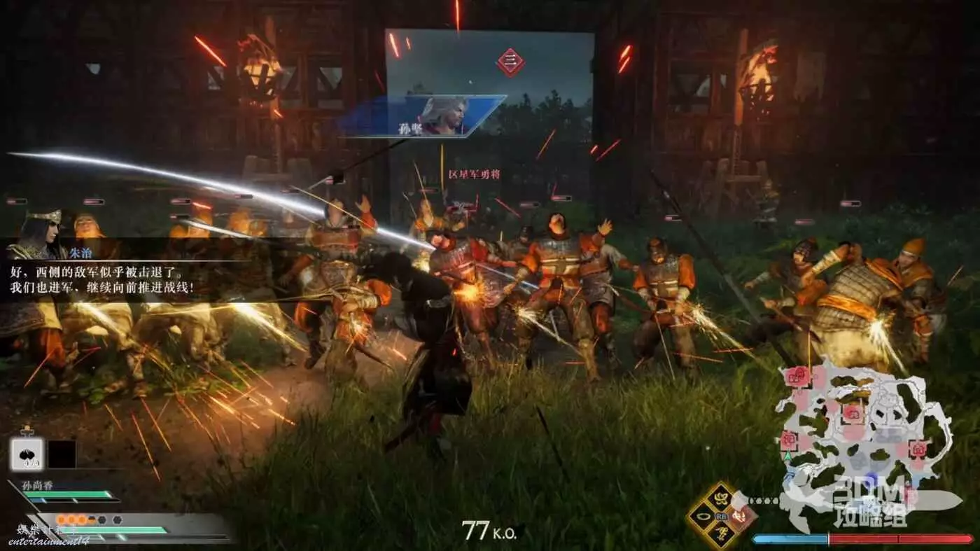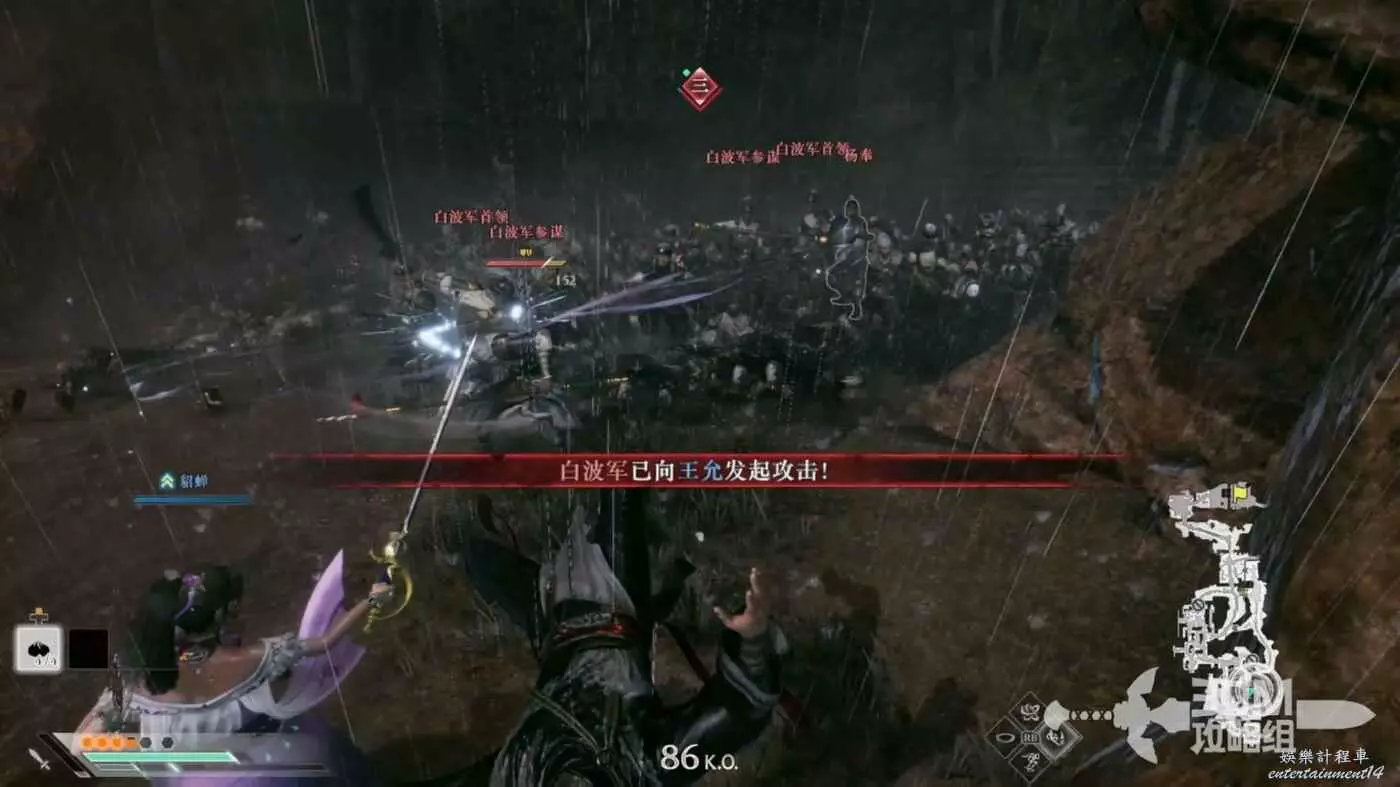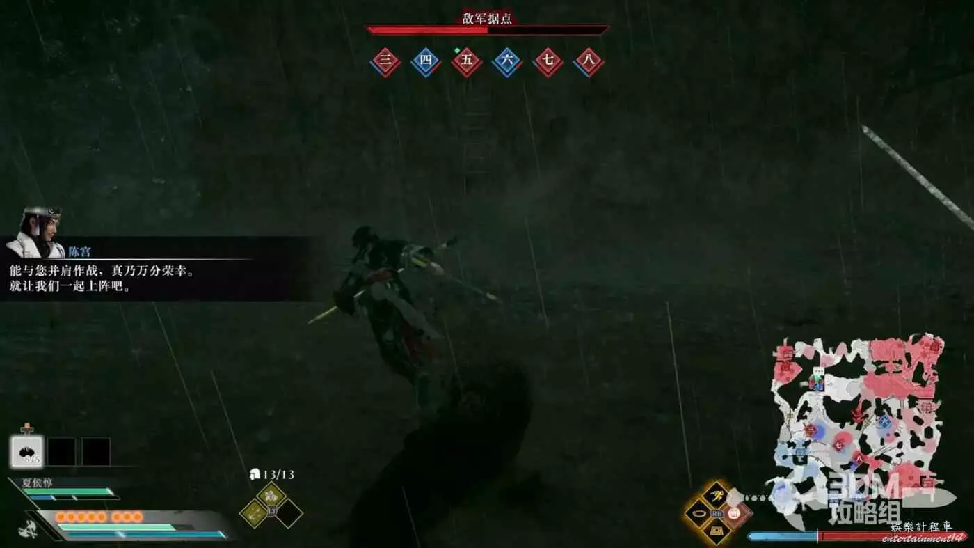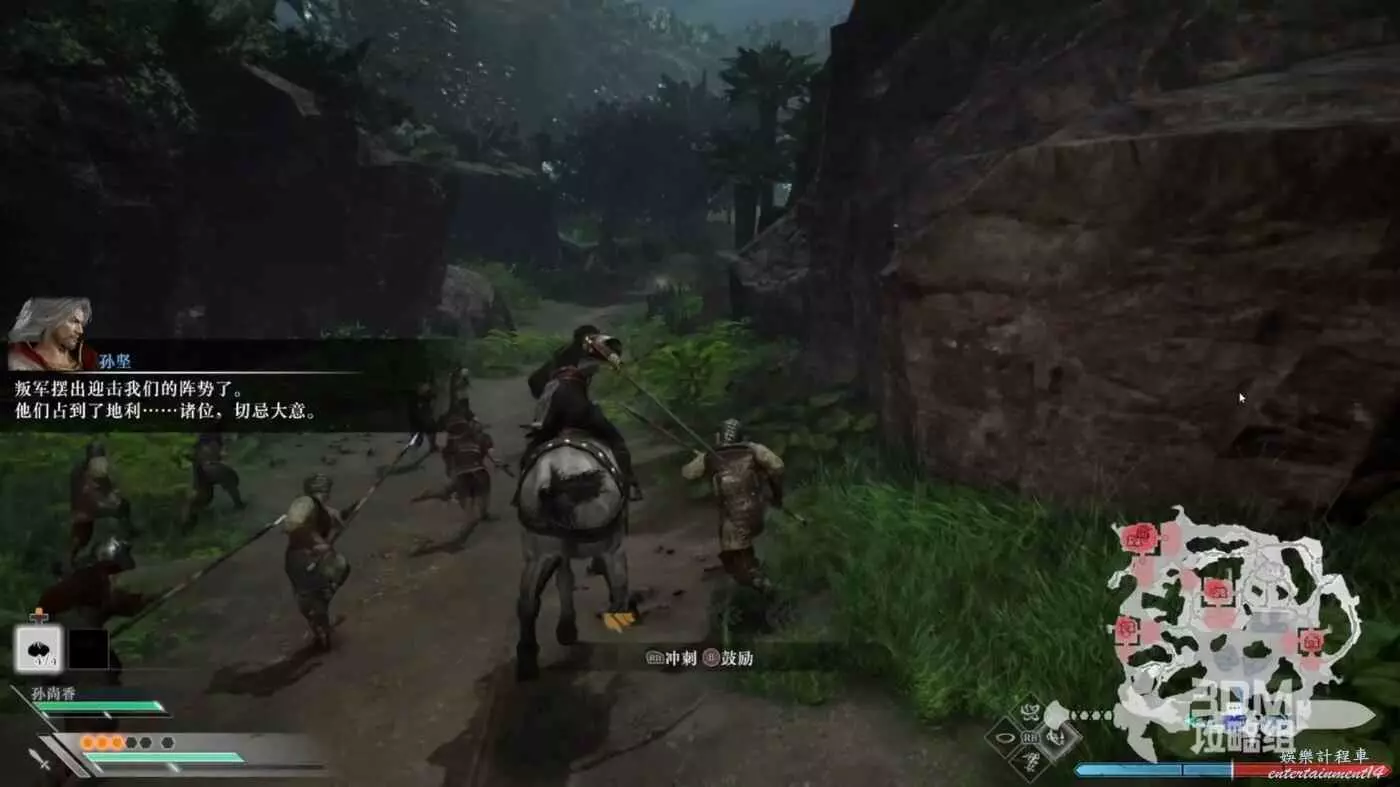 此處會受到多個敵人將領的攻擊,要注意閃避/防禦。同時小兵有時會受到地方將領的指示,身上會冒出紅光,此時的攻擊無法被防禦,需要閃避或者使用帶有發勁的武藝才能抗衡。