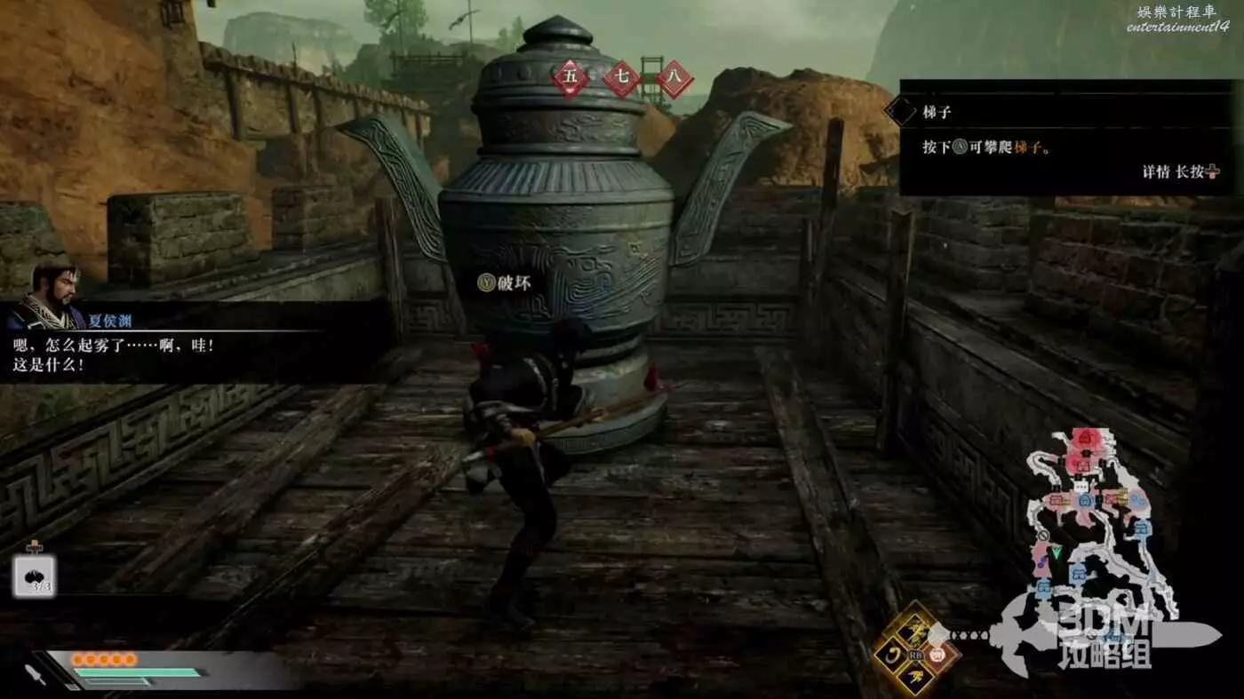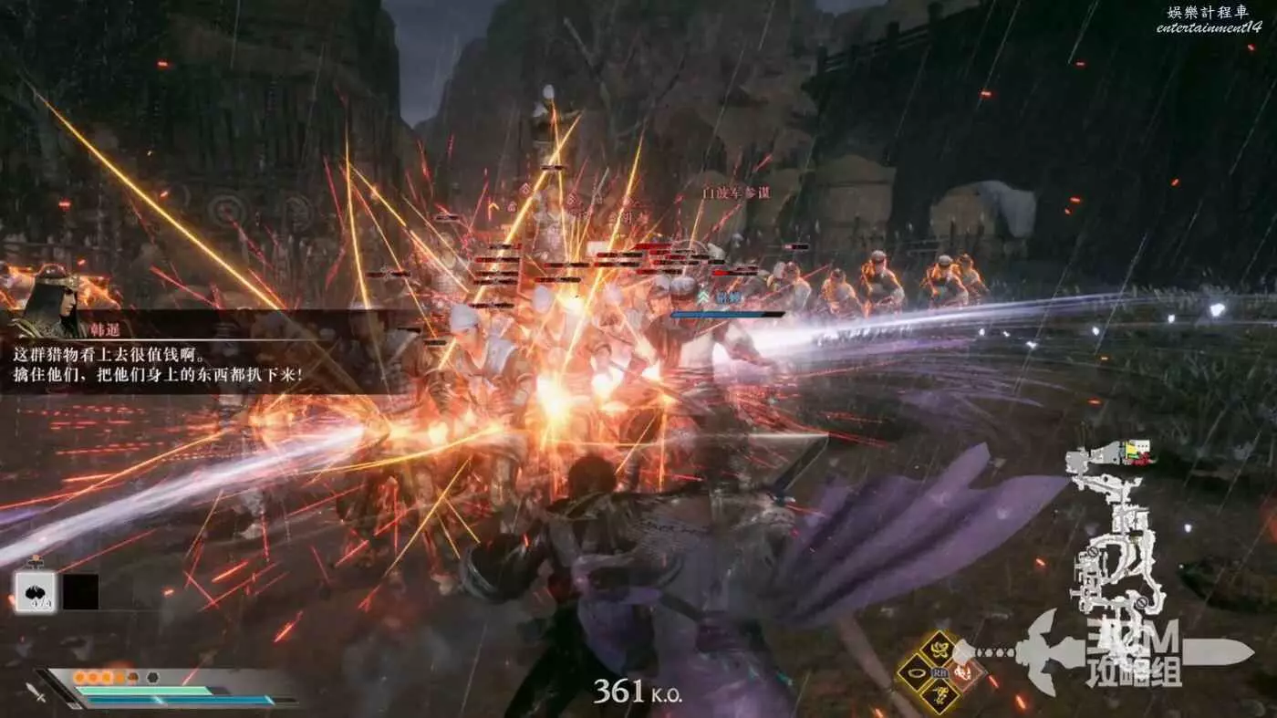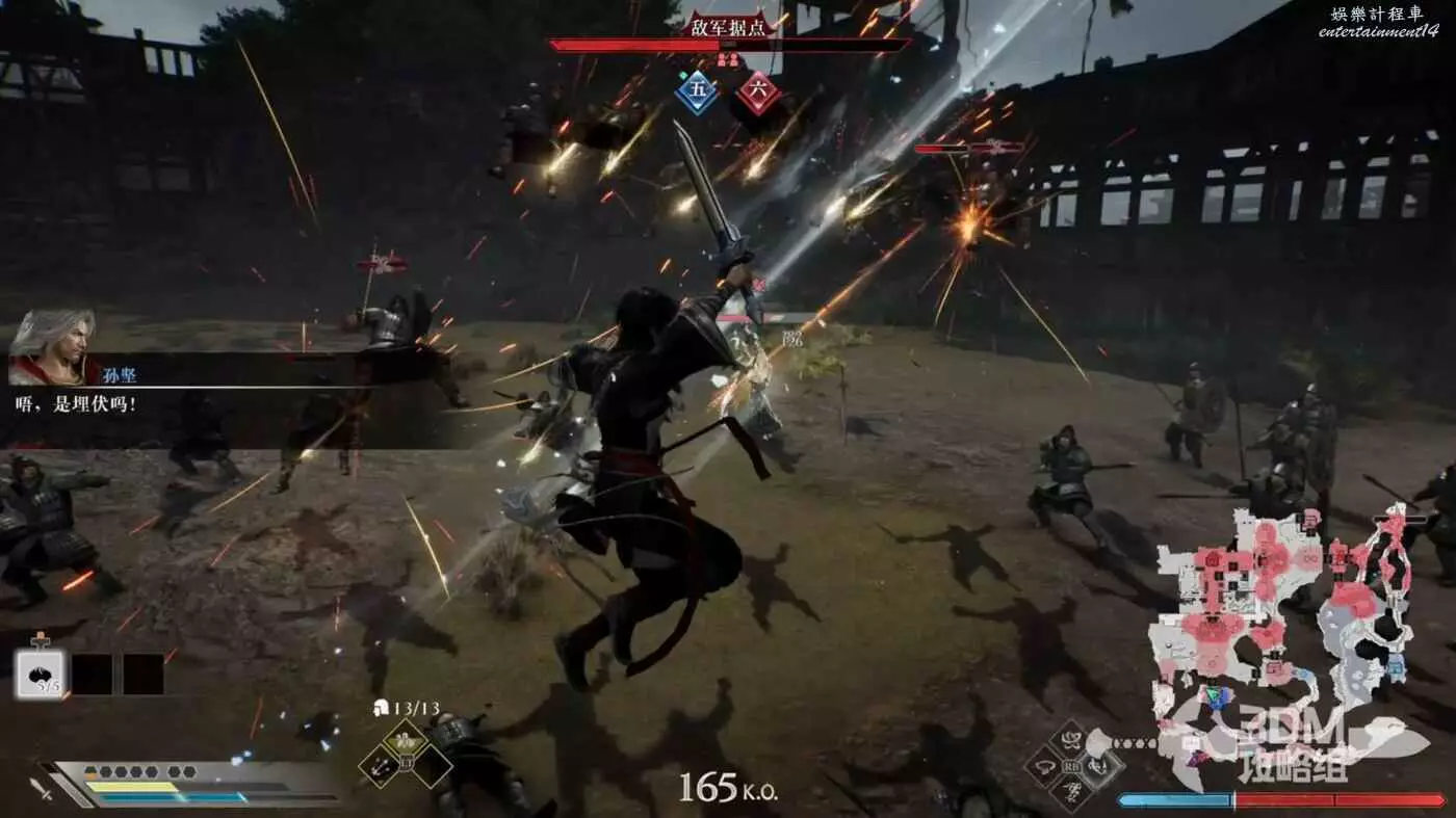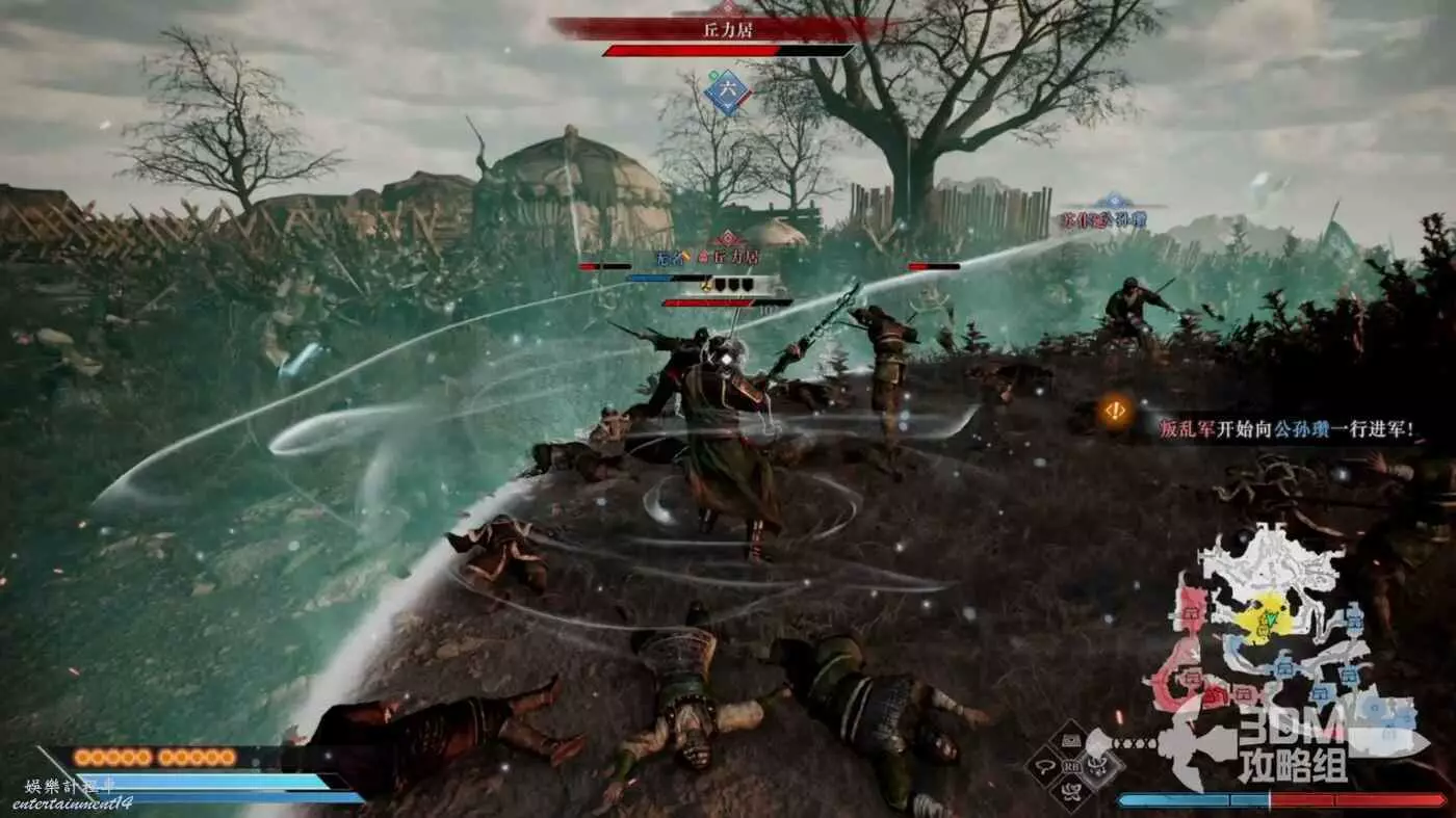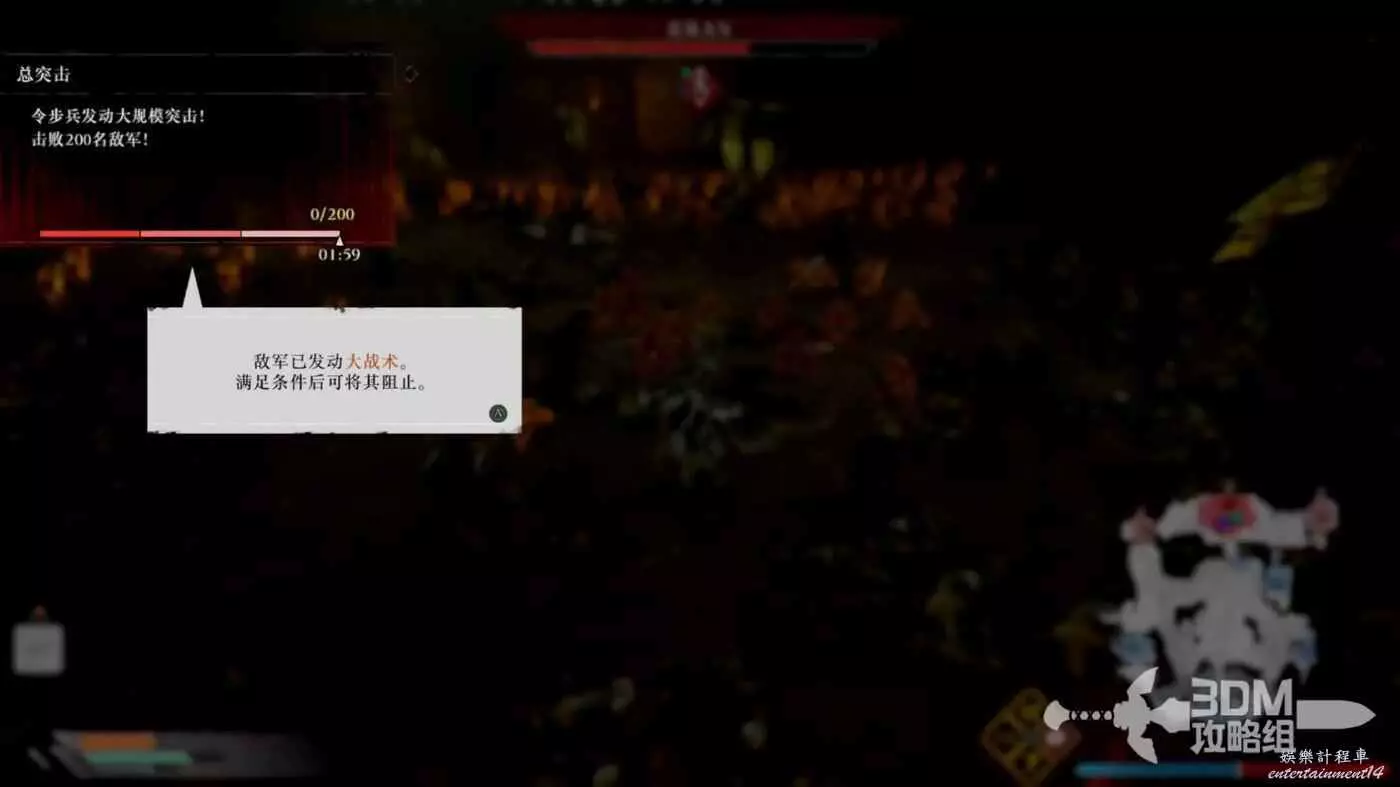 此處會受到多個敵人將領的攻擊,要注意閃避/防禦。同時小兵有時會受到地方將領的指示,身上會冒出紅光,此時的攻擊無法被防禦,需要閃避或者使用帶有發勁的武藝才能抗衡。
