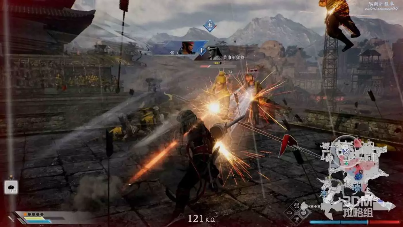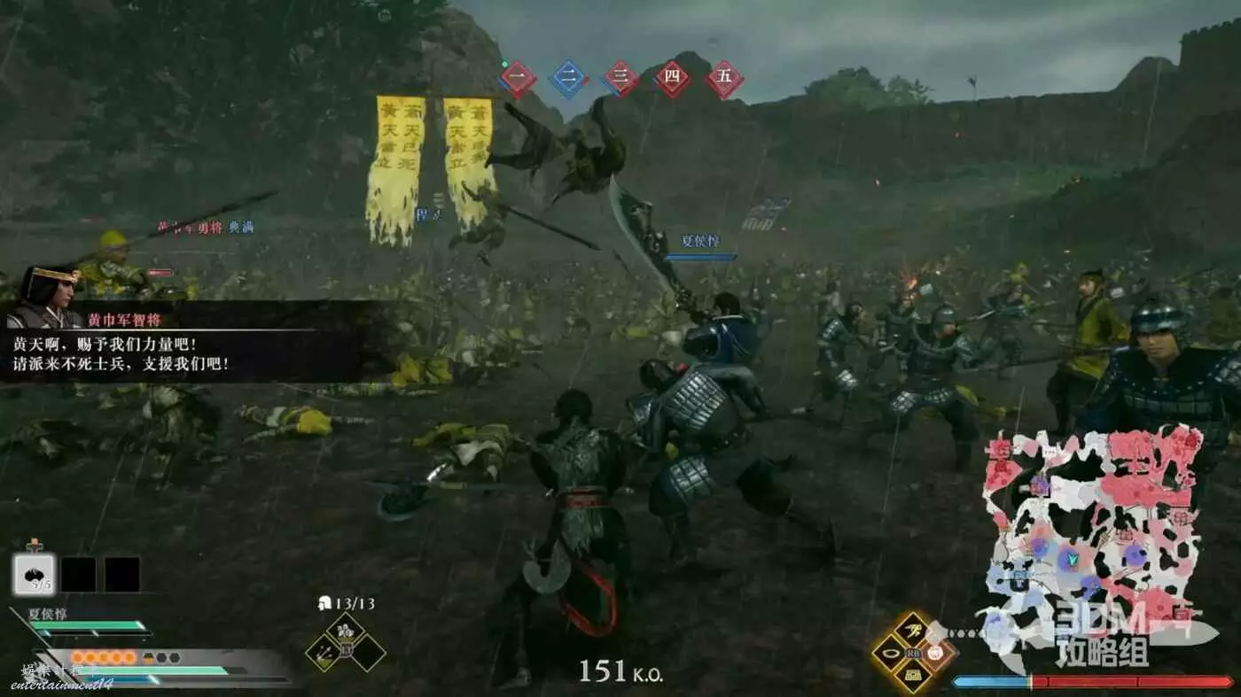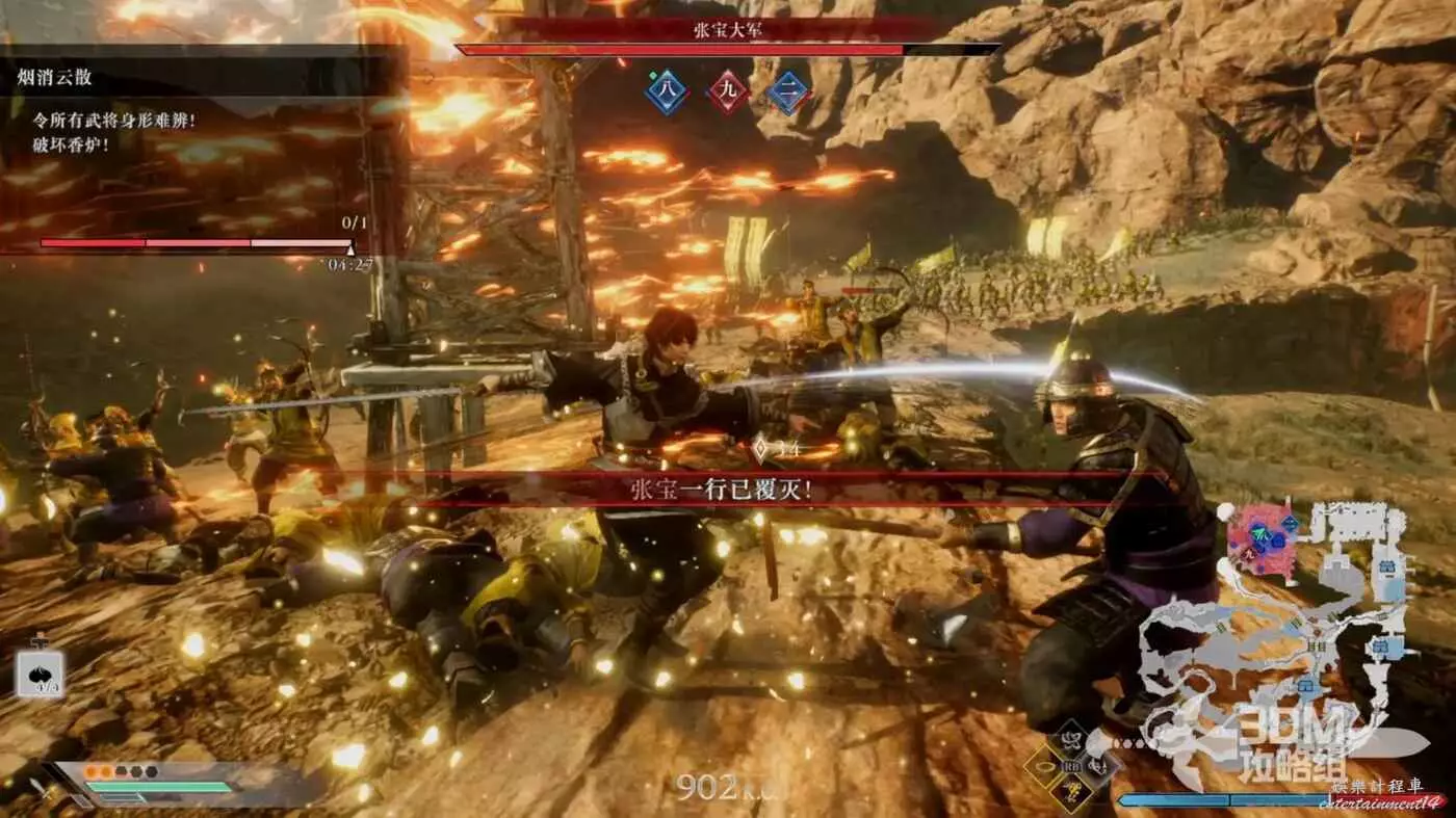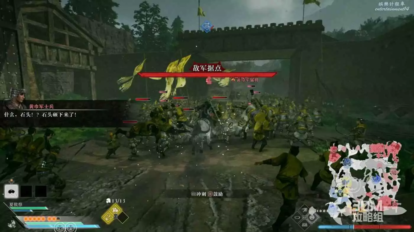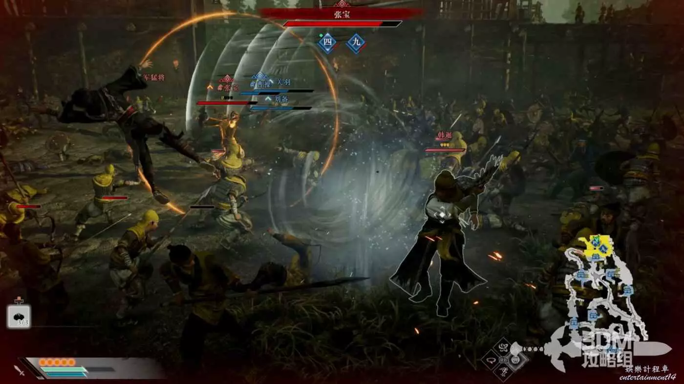 然後就可以從中間和右側一起向敵軍大本營進行攻擊,敵方大將張寶就在這裡,但要小心,此處有多名敵軍將領,注意防禦/閃避。