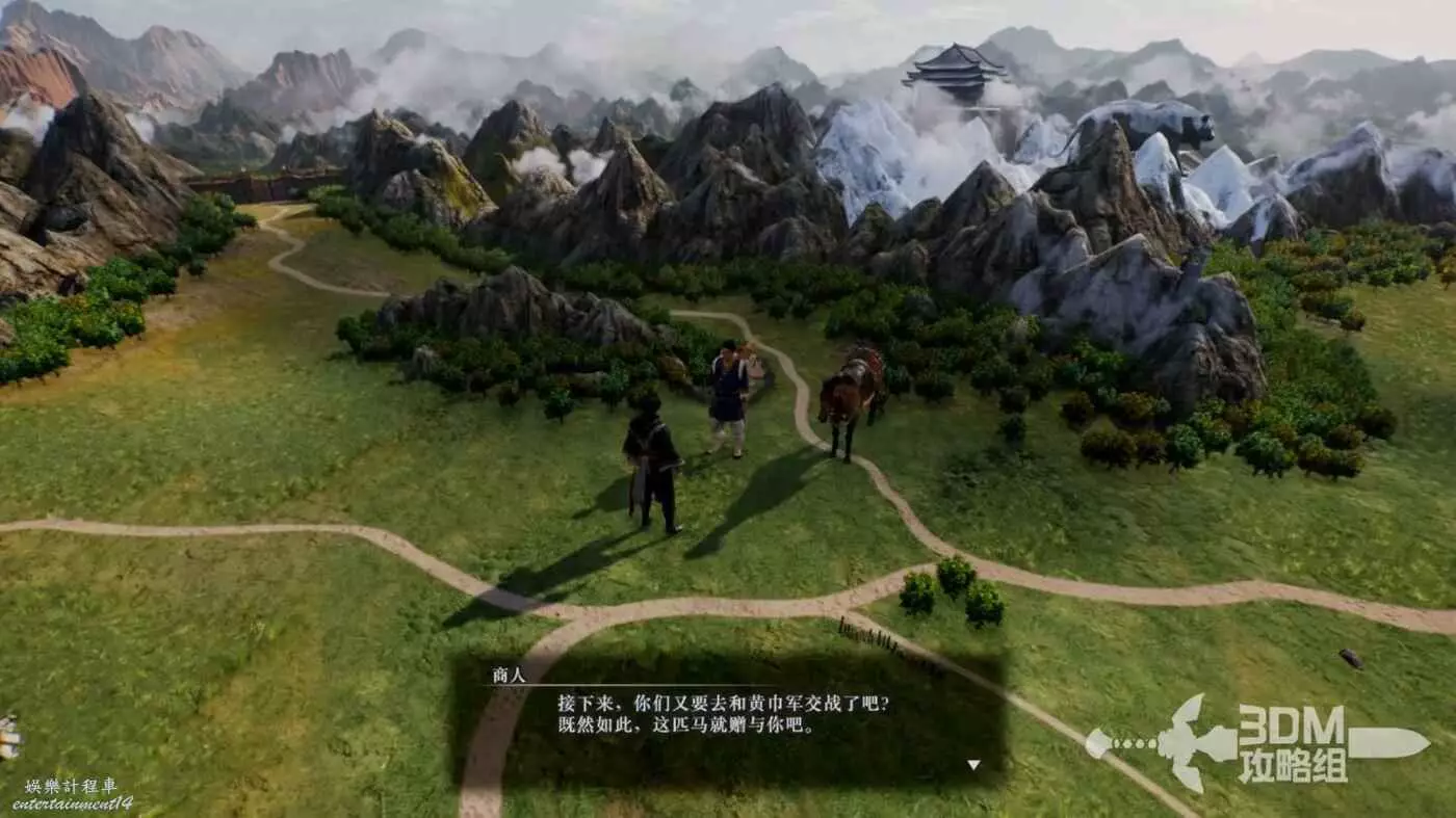 此時需要向前走與村長進行對話,他讓我們去前方的薊城落腳,周圍已經被黃巾軍燒殺搶掠。