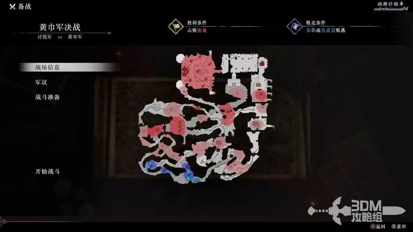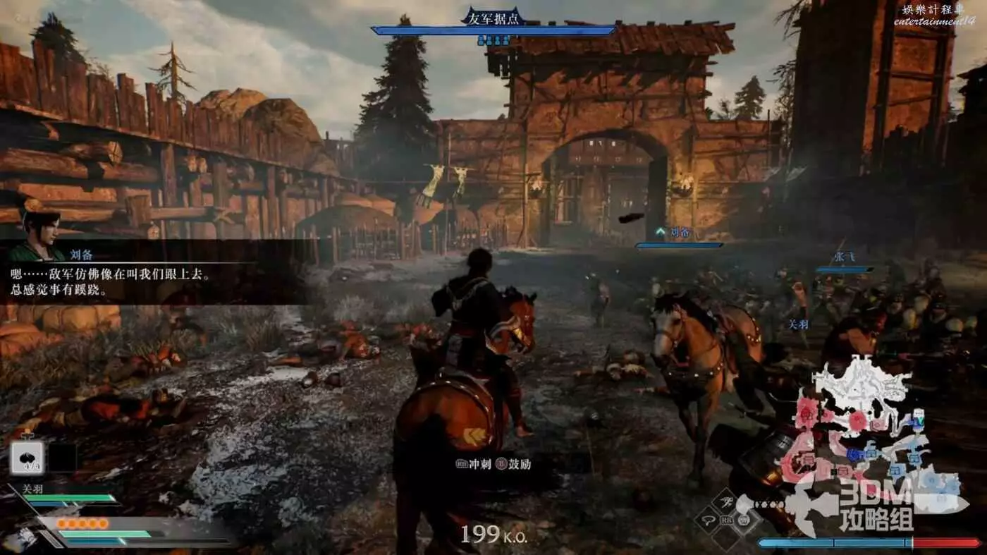 開局我們會和劉關張一起在最南邊,從西方道路前往敵方大本營。
